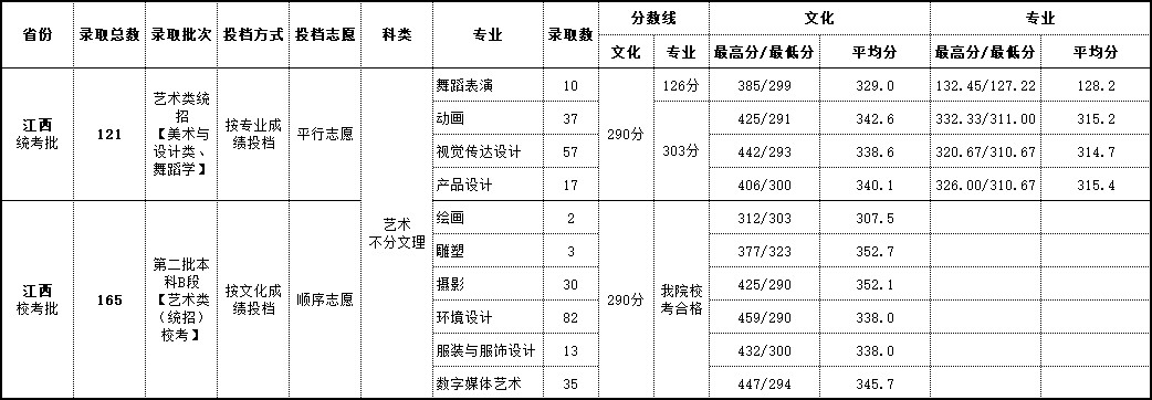 2018年 江西艺术类录取情况