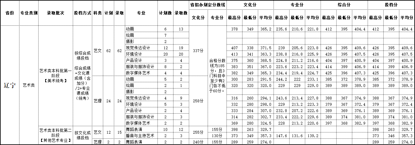 2019年 辽宁录取情况