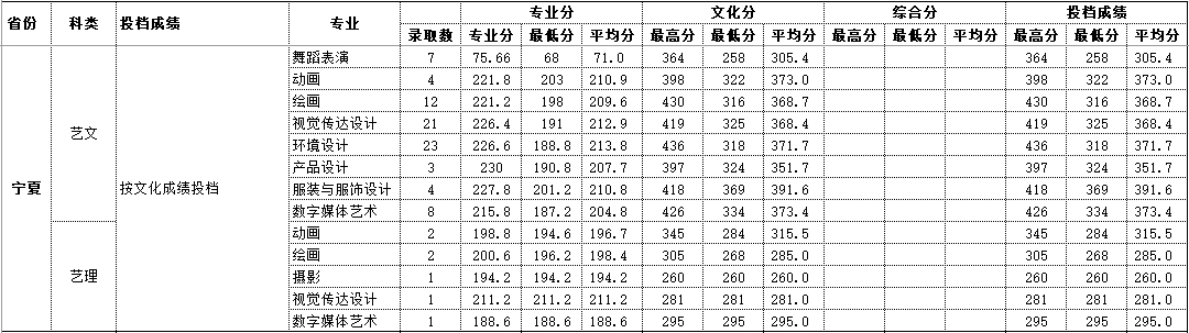 2020年宁夏 艺术类录取情况