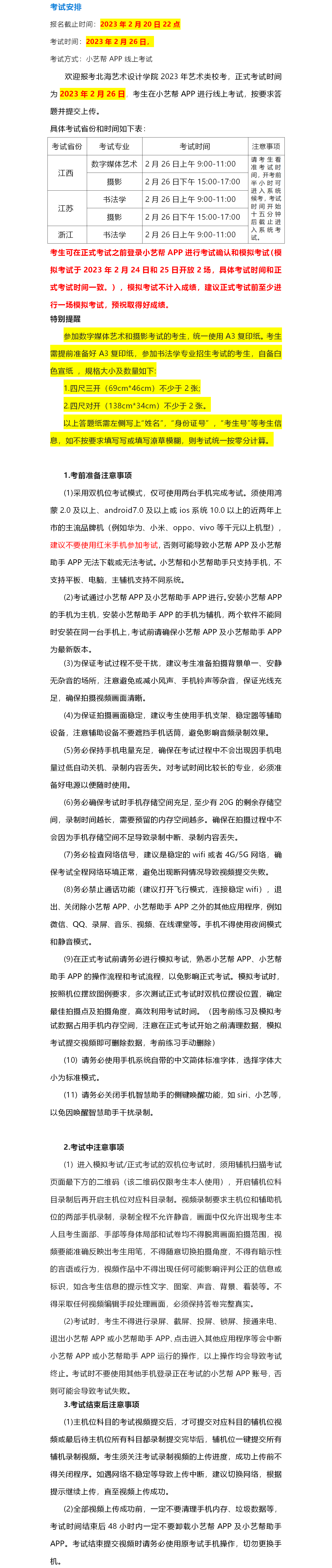北海艺术设计学院2023年艺术类校考线上考试公告