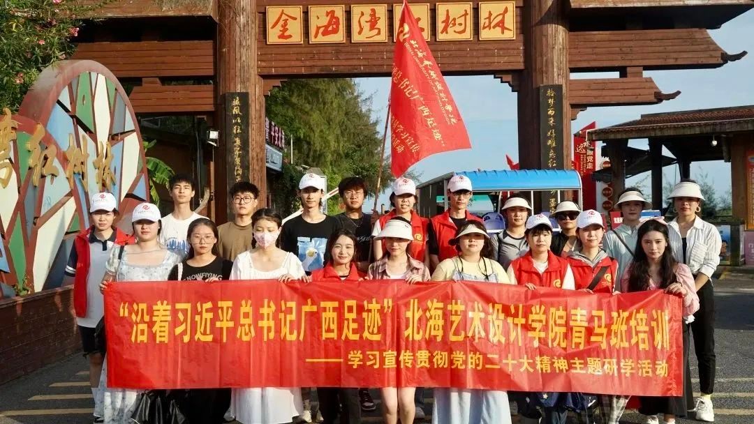 为深入学习党的二十大精神,贯彻习近平新时代中国特色社会主义思想,加强我校“青马工程”队伍建设,提高学员骨干能力素质培养,鼓励学员们成为新时代的合格马克思主义者与优秀青年,提升青马学员团队精神和协作意识。2023年5月27日,北海艺术设计学院青马班学员来到北海金海湾红树林开展“沿着习近平总书记广西足迹”学习宣传贯彻党的二十大精神主题研学活动。