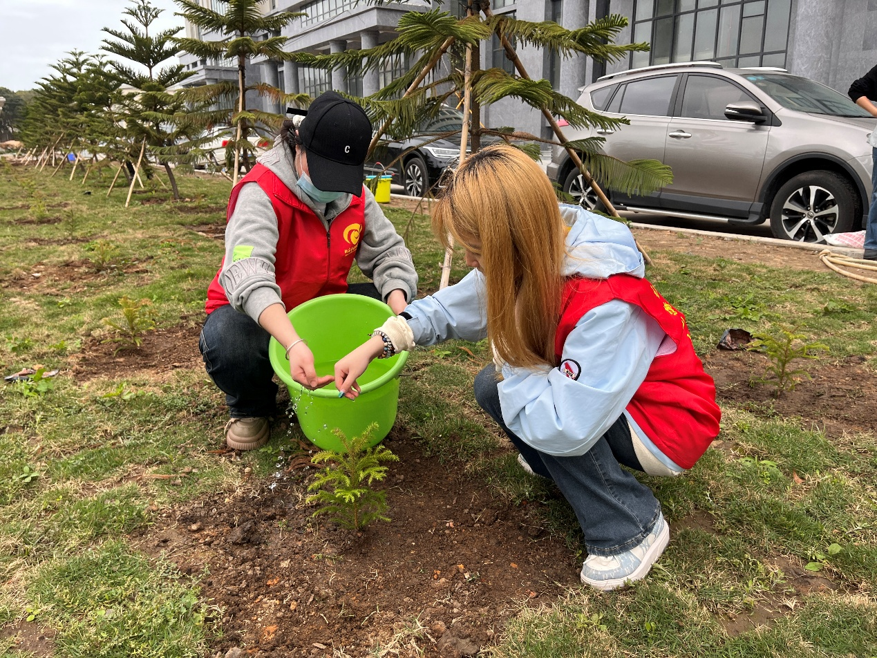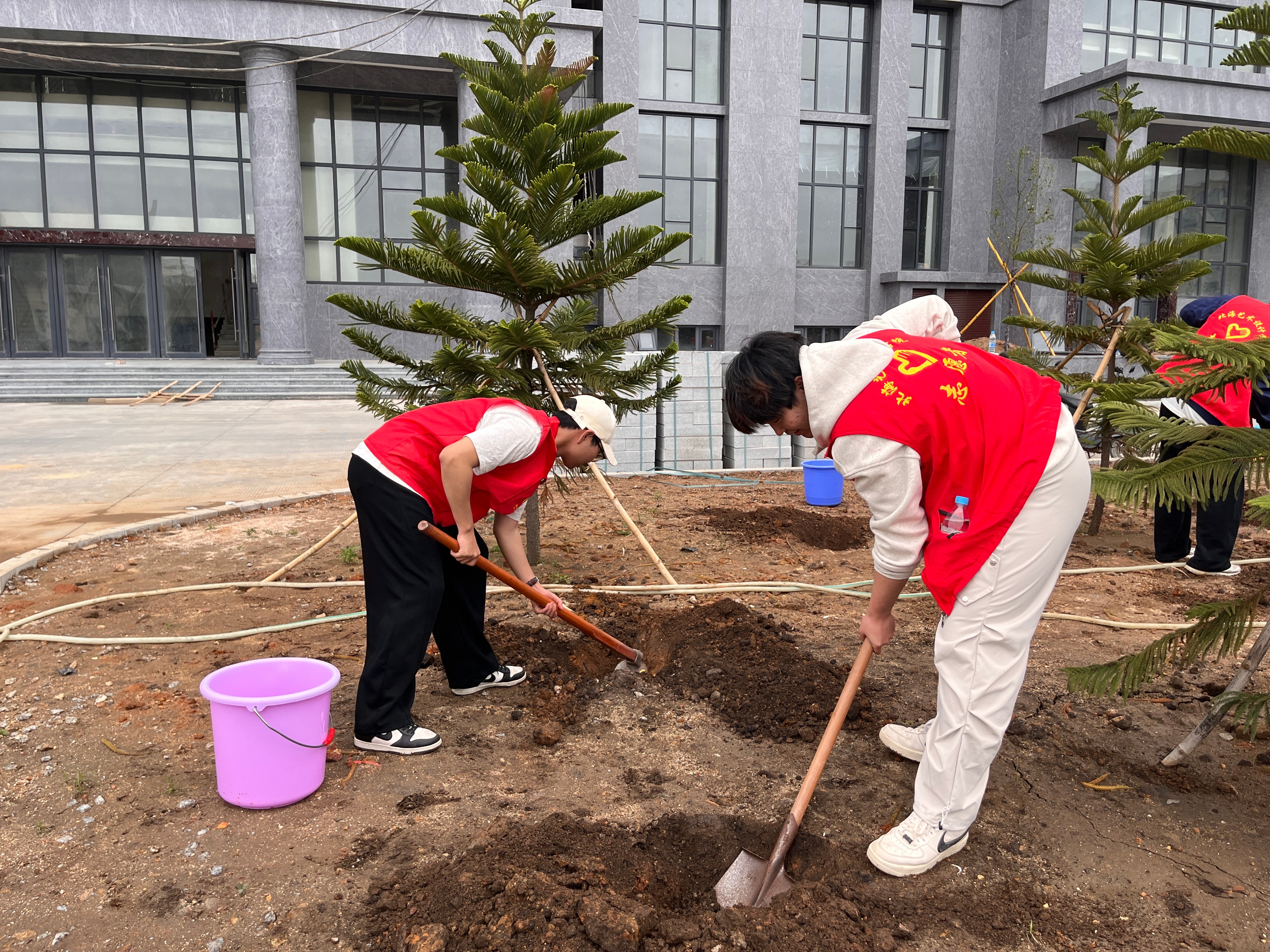 为深入学习贯彻习近平生态文明思想,切实践行“绿水青山就是金山银山”这一理念,坚持人与自然和谐共生,弘扬雷锋精神,增强我校师生绿色环保意识和社会责任感,同时进一步美化校园环境,3月11日,我校团委组织80余名志愿者在南校区开展“凝心聚‘绿’,青年先行”植树节活动。