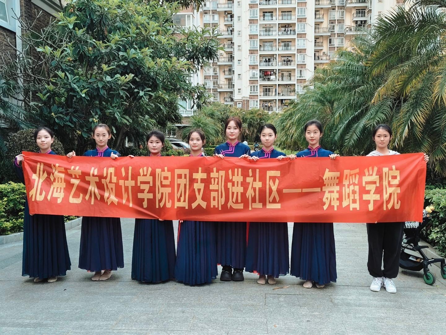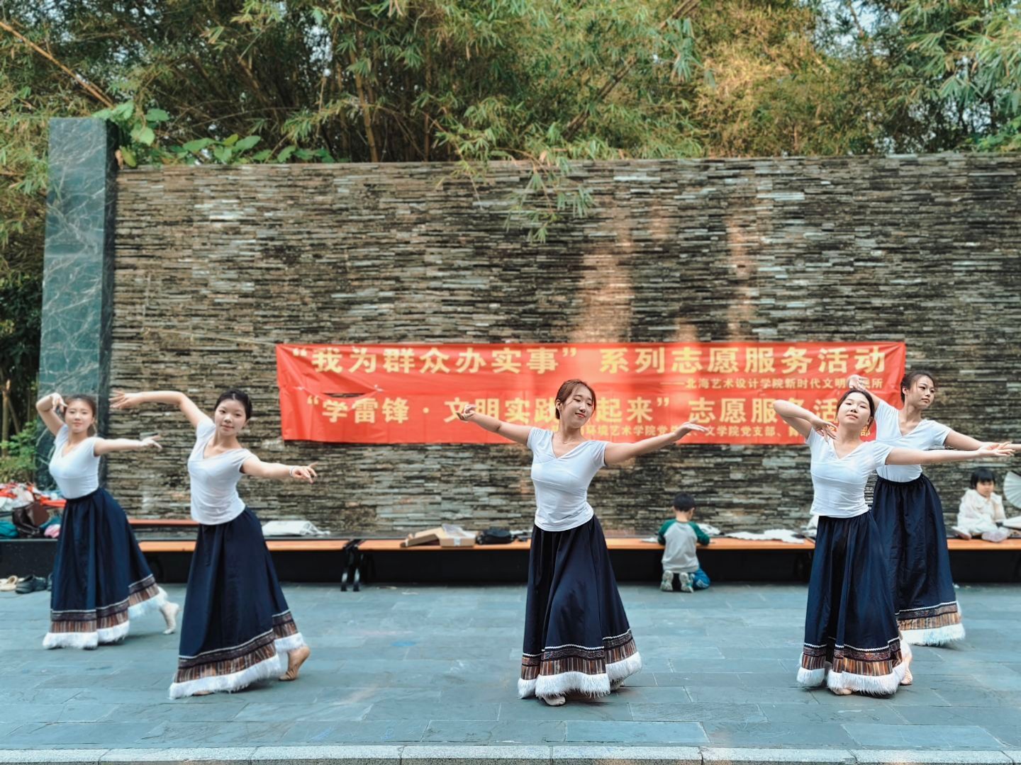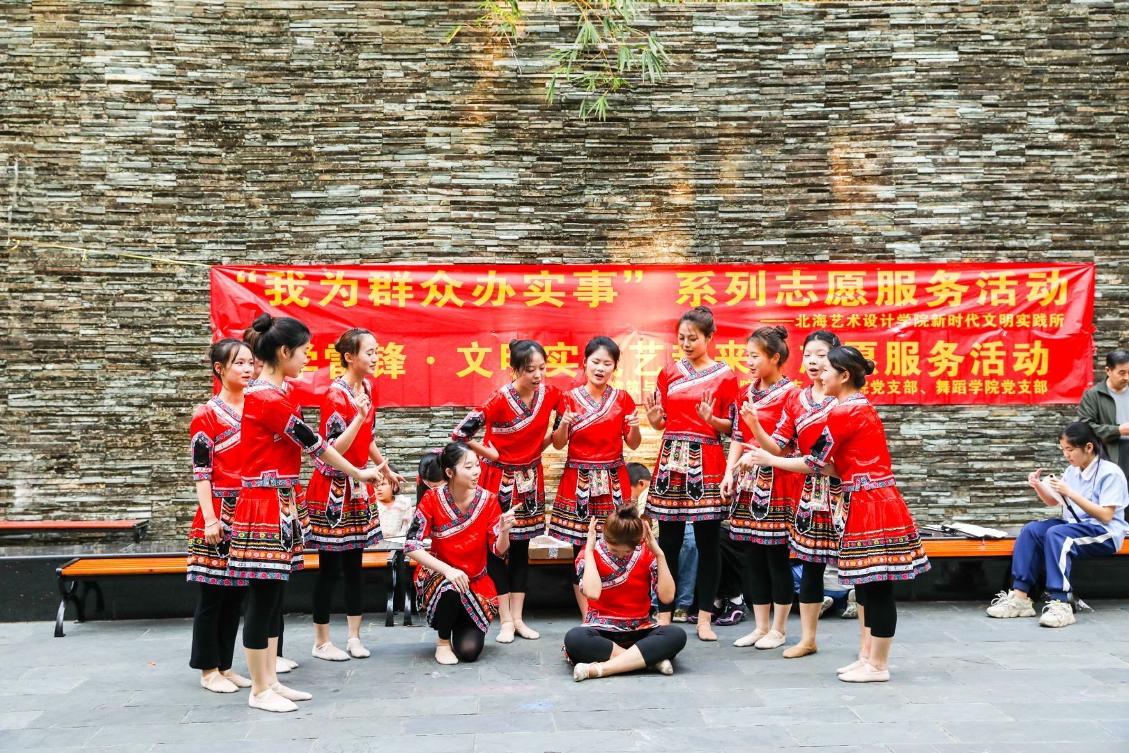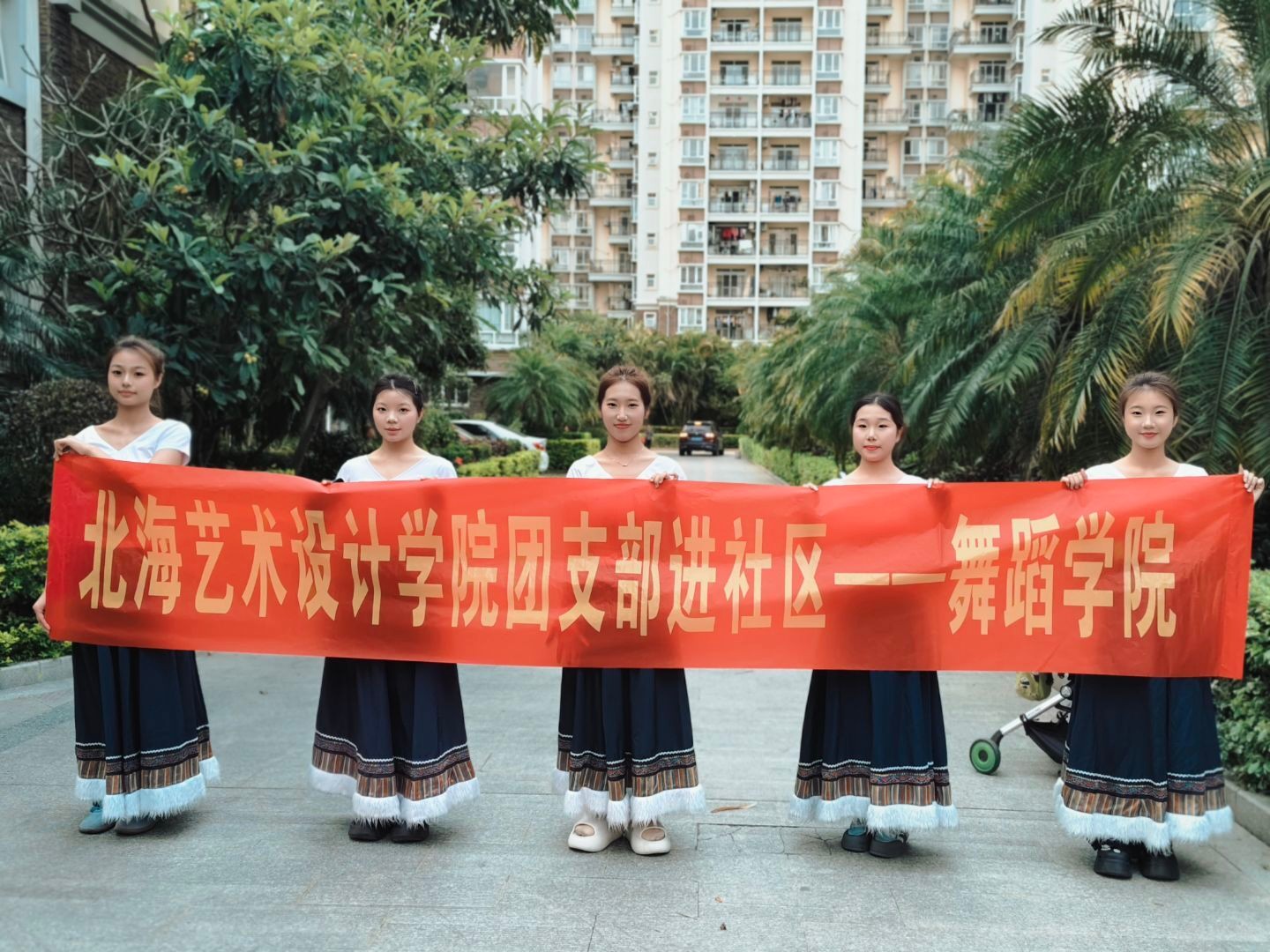 志愿服务活动正式拉开帷幕。舞蹈学院的同学们带来了精心准备的舞蹈节目。他们身着绚丽多彩的民族服饰,迈着轻盈的脚步、展示优美的舞姿,生动地展现了各民族独特的文化魅力,为社区居民带来了一场视觉盛宴。