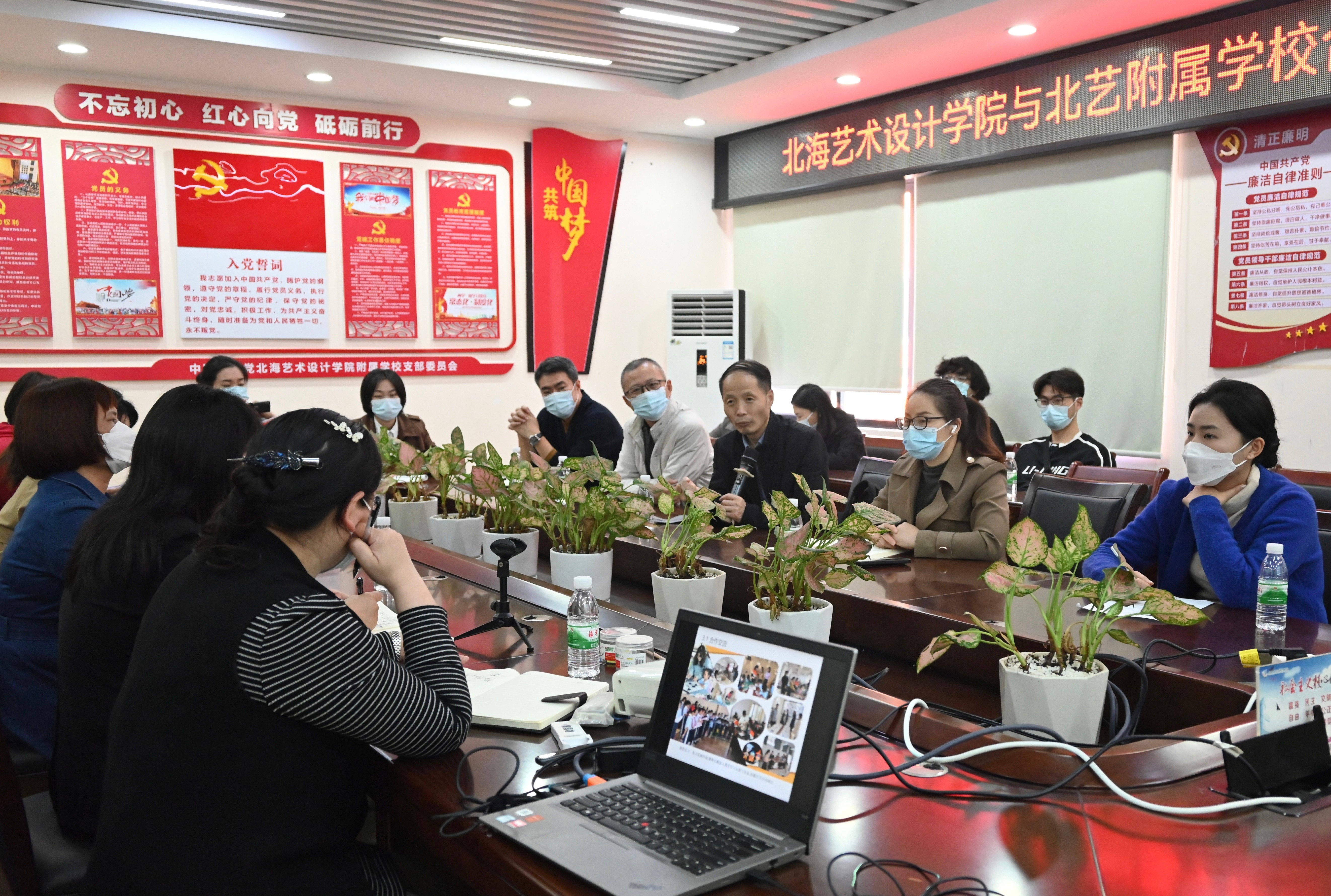 座谈会议由包玉红校长主持会上包校长介绍了学校师资、与北艺的合作历程、合作交流、合作课程、合作特色、合作参赛、办学成果等情况。双方围绕教学改革、学生实习实践、人才培养等方面的合作开展情况进行深入交流,重点对附校的“艺养教育”取得的长足进步,双方均给予高度评价。特别是由艺术教育专业的师生与附师生共同建设的童声合唱团,为校在市级、区级、国家级比赛中多次斩获荣誉,进一步提升了附校在社会上的影响力,现已成为家长口中的“金字招牌”进一步提升了附校的综合实力,并在家长的口碑相传中扩大了附校的知名度和社会影响力。包校长希望未来两校可以继续加深产教融合,扩大合作领域,加强校校共建,进一步推进教学改革,取得更多的教学成果。