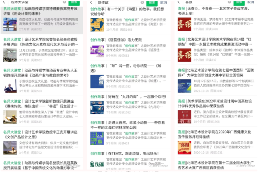 二是聚焦办学特色及成效展示学校新面貌。2022年,学校在人民网、学习强国、广西日报-广西云、广西新闻网、北海日报、北海广播电视台等多个省、市级主流媒体平台发布新闻累计112篇;北海日报刊发 重点稿件《不忘来时路,逐梦向未来——北海艺术设计学院创立22年实现跨越式发展》,深刻回顾学校办学22年来取得的显著成果。通过不断拓展与校外主流新闻媒体的横向联系,学校社会知名度、美誉度进一步提升。