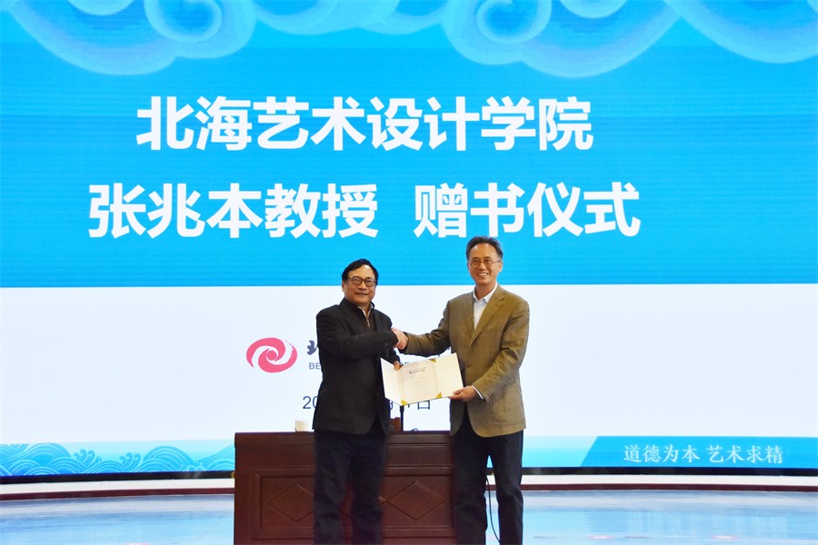 校长卢新华向张兆本教授颁发捐书荣誉证书