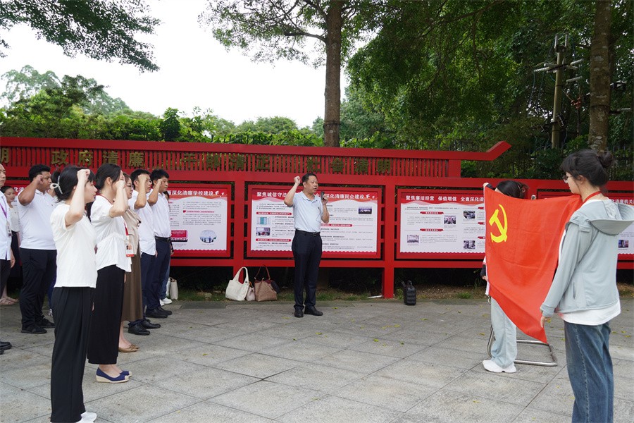 为进一步加强党风廉政建设,筑牢拒腐防变思想防线,推动我校廉政文化建设向纵深发展,我校于6月21日上午在园博园碧海清风园组织开展了以“党纪学习教育,廉政教育活动”为主题的系列教育活动。学校党委书记覃宪儒、纪委书记王照伟以及各党总支书记、党员同志参加活动。