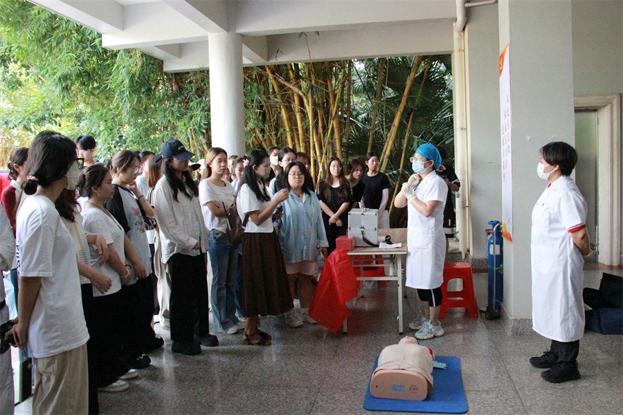消防活动现场还设置了沉浸式消防体验环节,全体参演人员及众多闻讯而来的师生积极参与体验。图书馆门前,大家争相体验穿越烟道火场逃生,学习穿戴自救呼吸器,在工作人员的指导下操作消防车、灭火器灭火,校医务室人员进行心肺复苏演示和指导。通过亲身体验,师生们对消防安全知识有了更直观、更深刻的理解,自护、自救和互救能力得到有效提升。