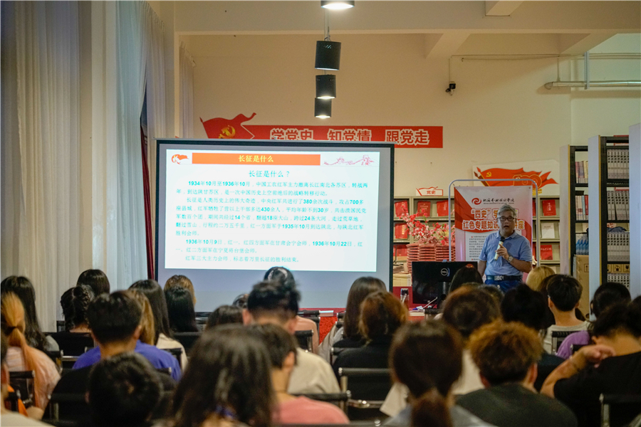 021年6月1日下午,学校图书馆开展“不忘初心学党史”系列讲座活动,这是“不忘初心学党史”系列讲座的第四场,由图书馆副馆长王作先主持,特邀马克思主义学院院长姜献生教授主讲。图书馆全体人员参加了此次活动。