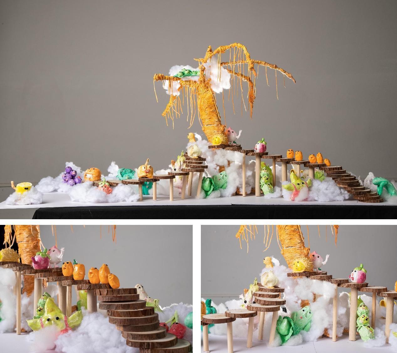 雕塑 1901 班 蔡咚咚《果蔬精》160×60×55cm 综合材料 指导教师:许珍珍、覃媛媛