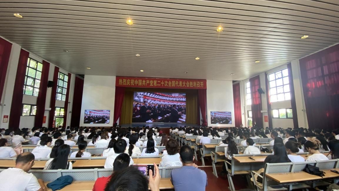 2022年10月16日上午10点整,中国共产党第二十次全国代表大会在北京人民大会堂隆重开幕,中共中央总书记、国家主席、中央军委主席习近平代表第十九届中央委员会向大会作报告。学院党员在学校主会场大礼堂和分会场伦理楼107教室集体收看大会实况,第一时间学习领会大会精神。