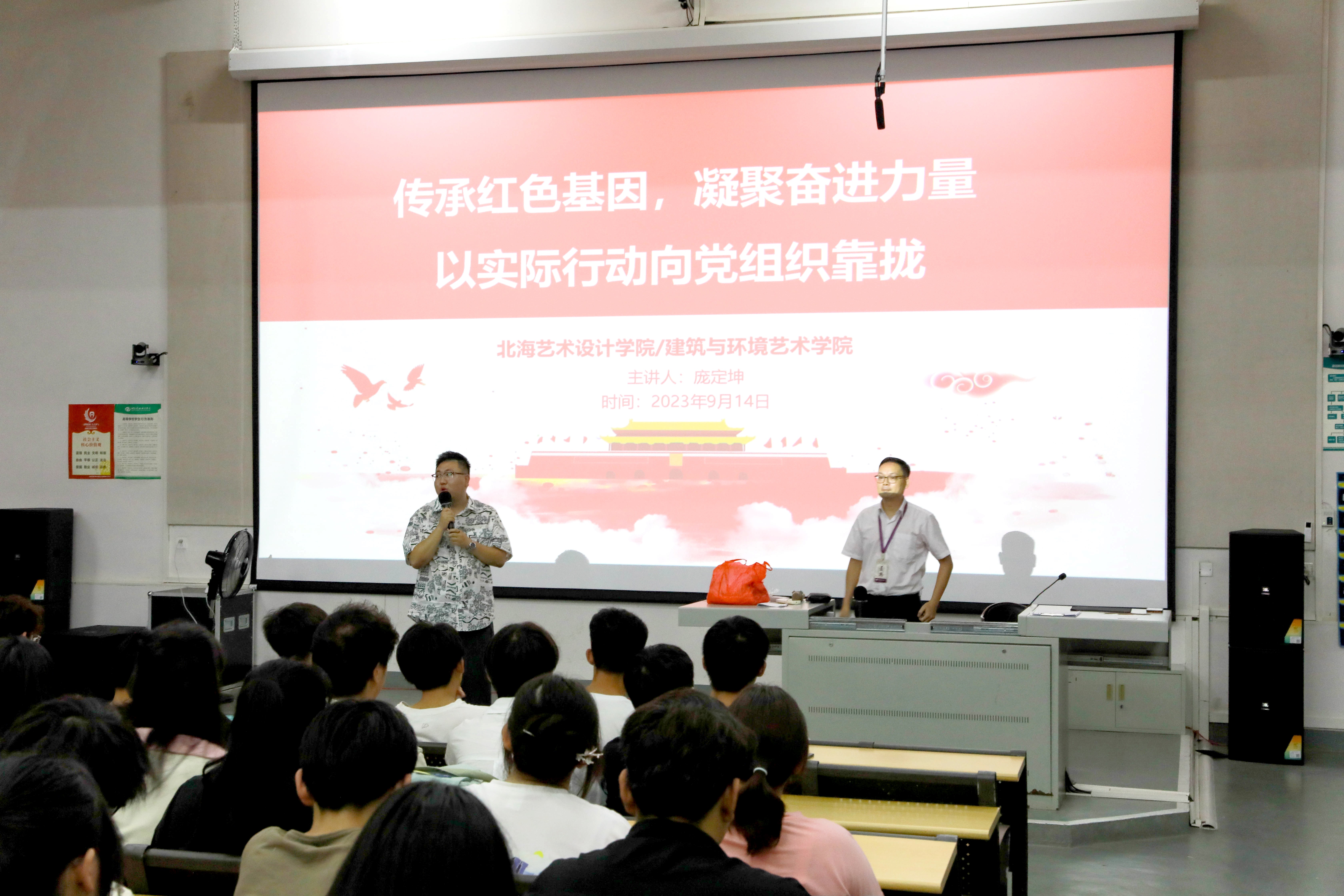 从“小小红船”到“巍巍巨轮”,中国共产党一步一脚印,踏下时代烙印。2023年9月14日由建筑与环境艺术学院党总支书记庞定坤于公德楼107开展“2023新生入党启发教育”主题讲座。讲座由建筑与环境艺术学院马有泽老师进行主持,建环学院2023级班级、年级辅导员和全体新生共同听讲。