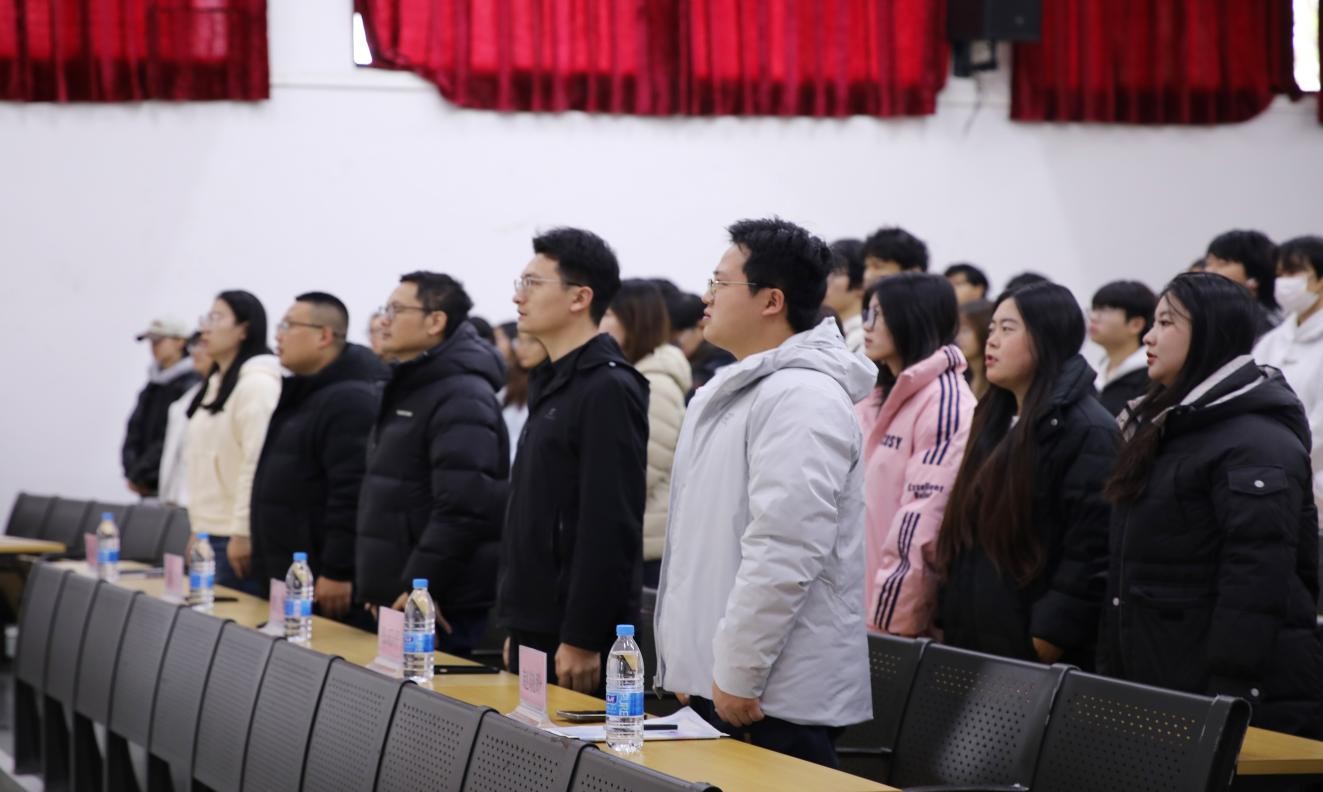 随后,赵晓盼书记发表致辞。他首先对本学期分团委学生会全体成员的辛勤付出与亮眼成绩给予充分肯定,强调各部门在校园文化建设、志愿服务开展等方面,有效搭建了学院与学生沟通的桥梁。同时,他鼓励大家在今后工作中既要立足本职、精益求精,也要勇于突破、大胆尝试。最后,他寄语全体成员珍惜平台、锤炼本领,在服务同学、奉献校园的过程中实现自我成长。大会在全体成员齐唱校歌的庄重氛围中走向尾声,之后大家移步指定位置合影留念,为本次总结大会画上圆满句号。