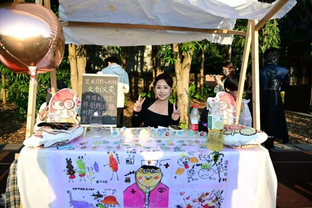 系列课程结束后,一场特殊的爱心义卖在校园内开展。义卖摊位上,福利院孩子们的手绘作品打印成海报展出,每一幅作品都承载着童真与梦想。学院分团委志愿者为福利院儿童创作的动漫文创IP引得过往师生驻足选购,用实际行动传递爱心。