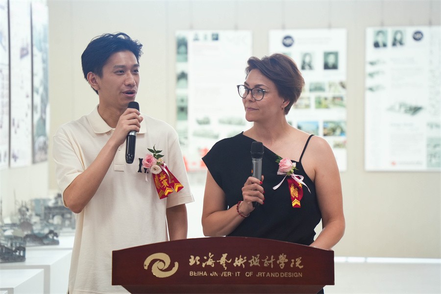 5月23日下午,我校建筑与环境艺术学院与匈牙利佩奇大学工程与信息技术学院短期课程结课成果展在艺德楼八楼中展厅开幕。学校副校长邱杰、何煜,纪委书记王照伟出席开幕式,建筑与环境艺术学院院长张春东,党总支书记庞定坤,副院长蔡世伟、张乐平,党总支副书记曲玥,佩奇大学工业系主任诺伯特、佩奇大学工程与信息技术学院建筑视觉系副教授艾瑞卡,佩奇大学博士茱莉亚,佩奇大学博士肖洒,通识教育学院(体育部)外语教研室主任曾达英,参与短期课程的教师代表及全体学生参加开幕式。开幕式由建筑与环境艺术学院副院长张乐平主持。