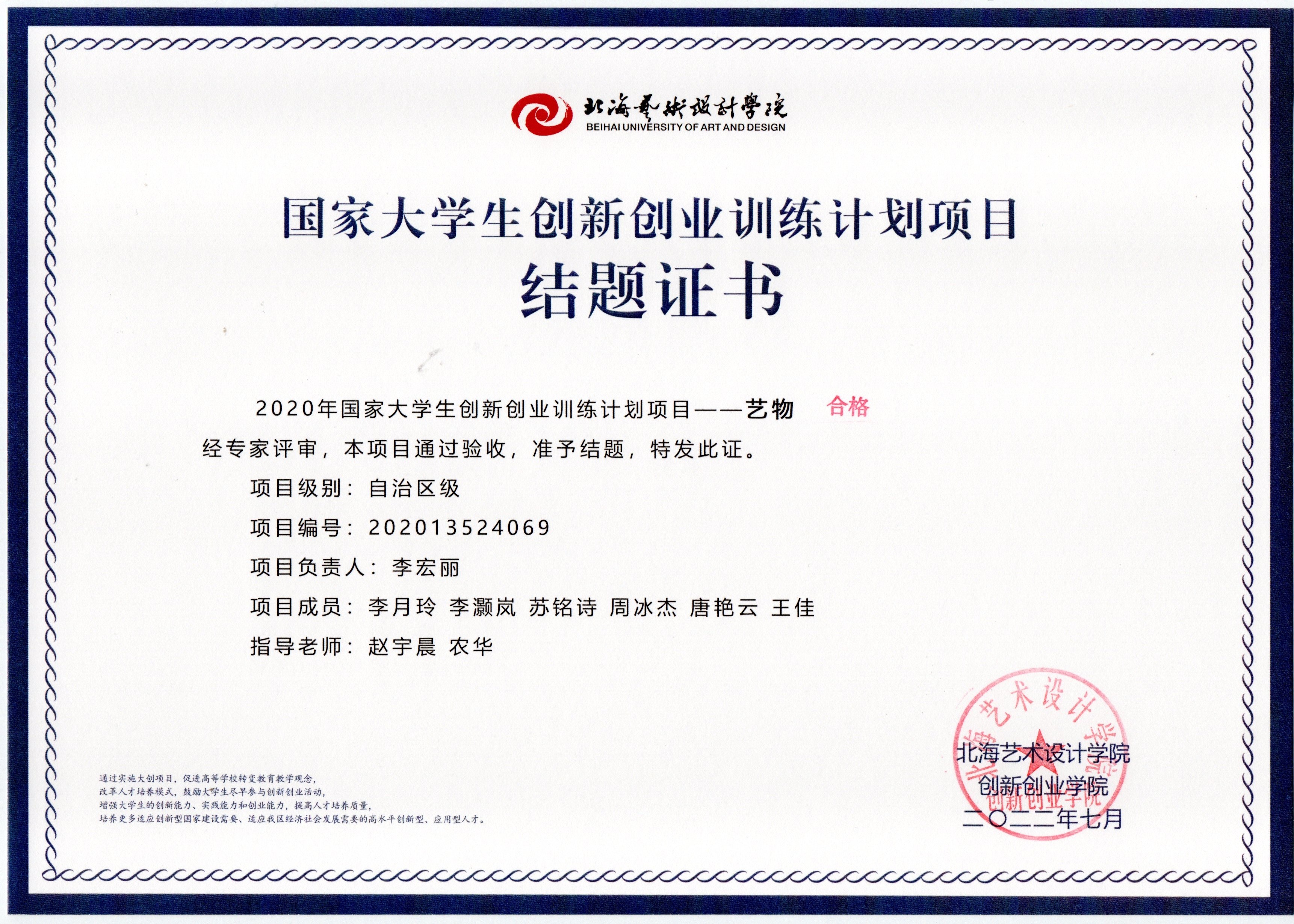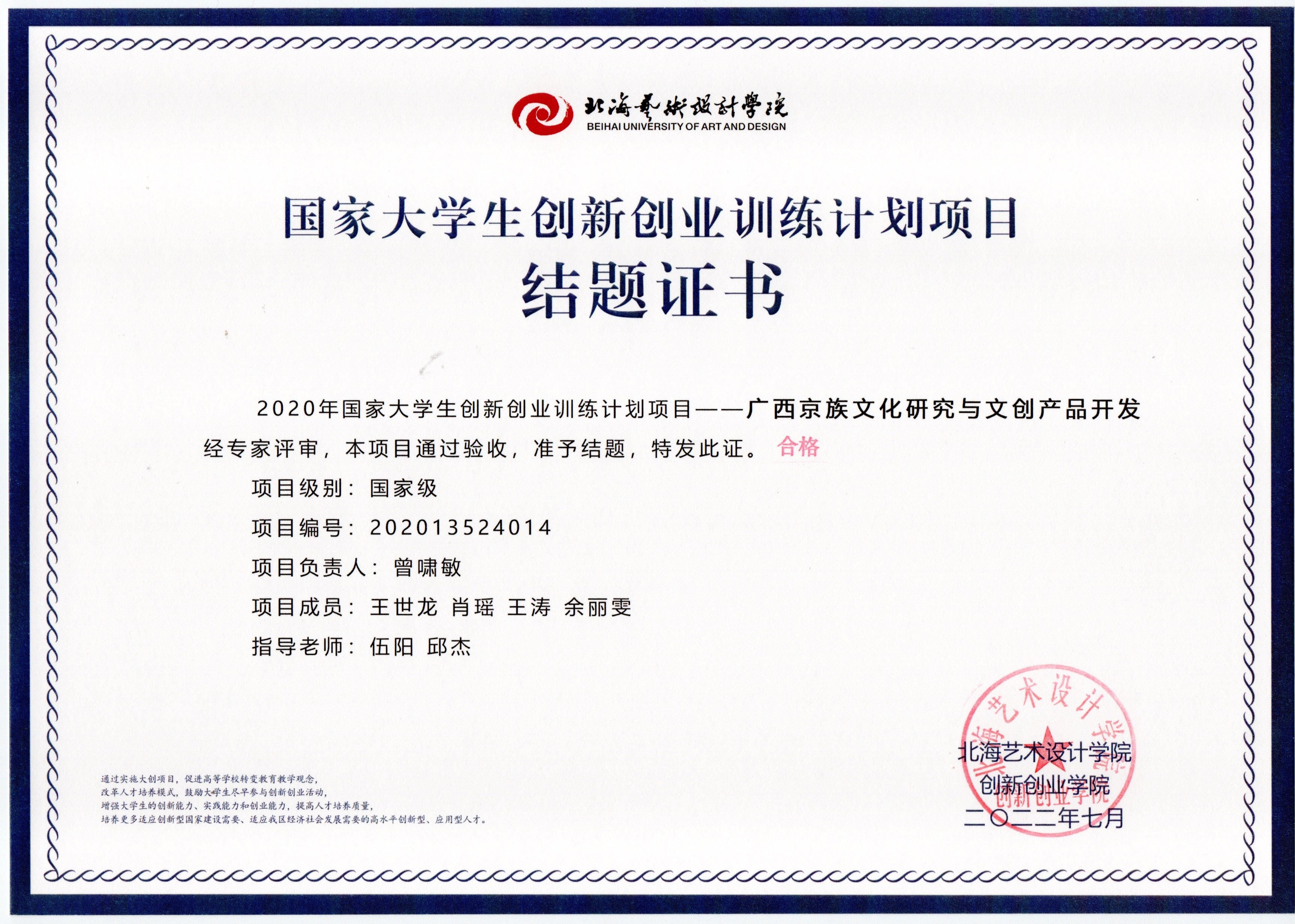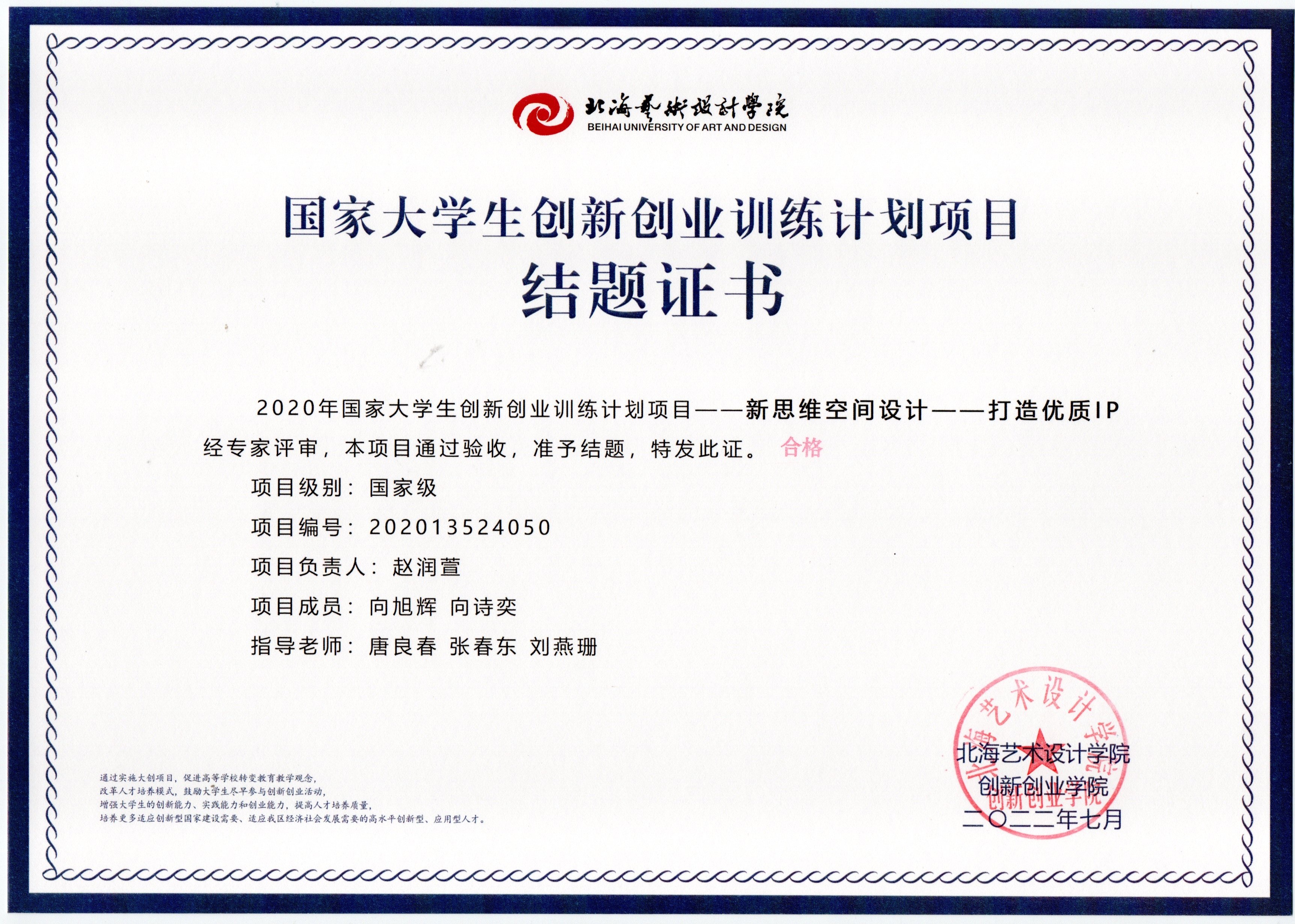 2020年立项(结题证书)