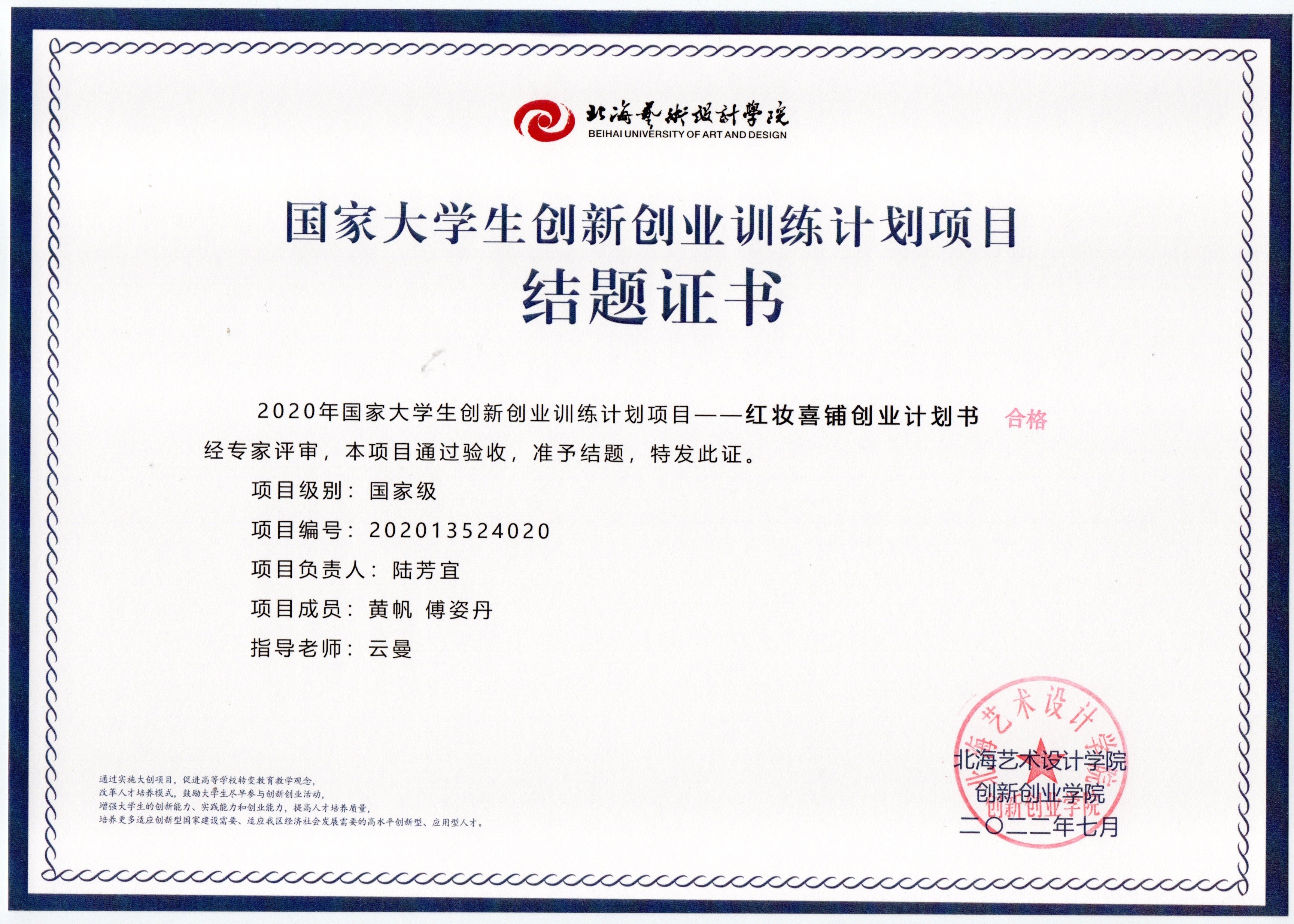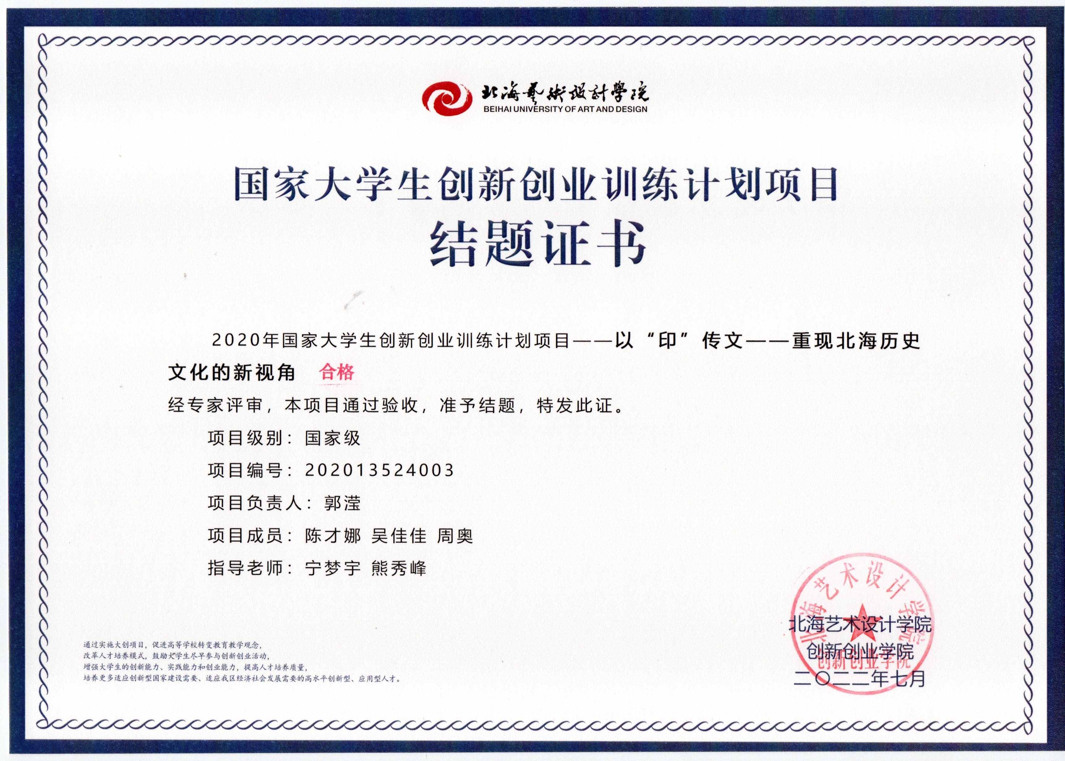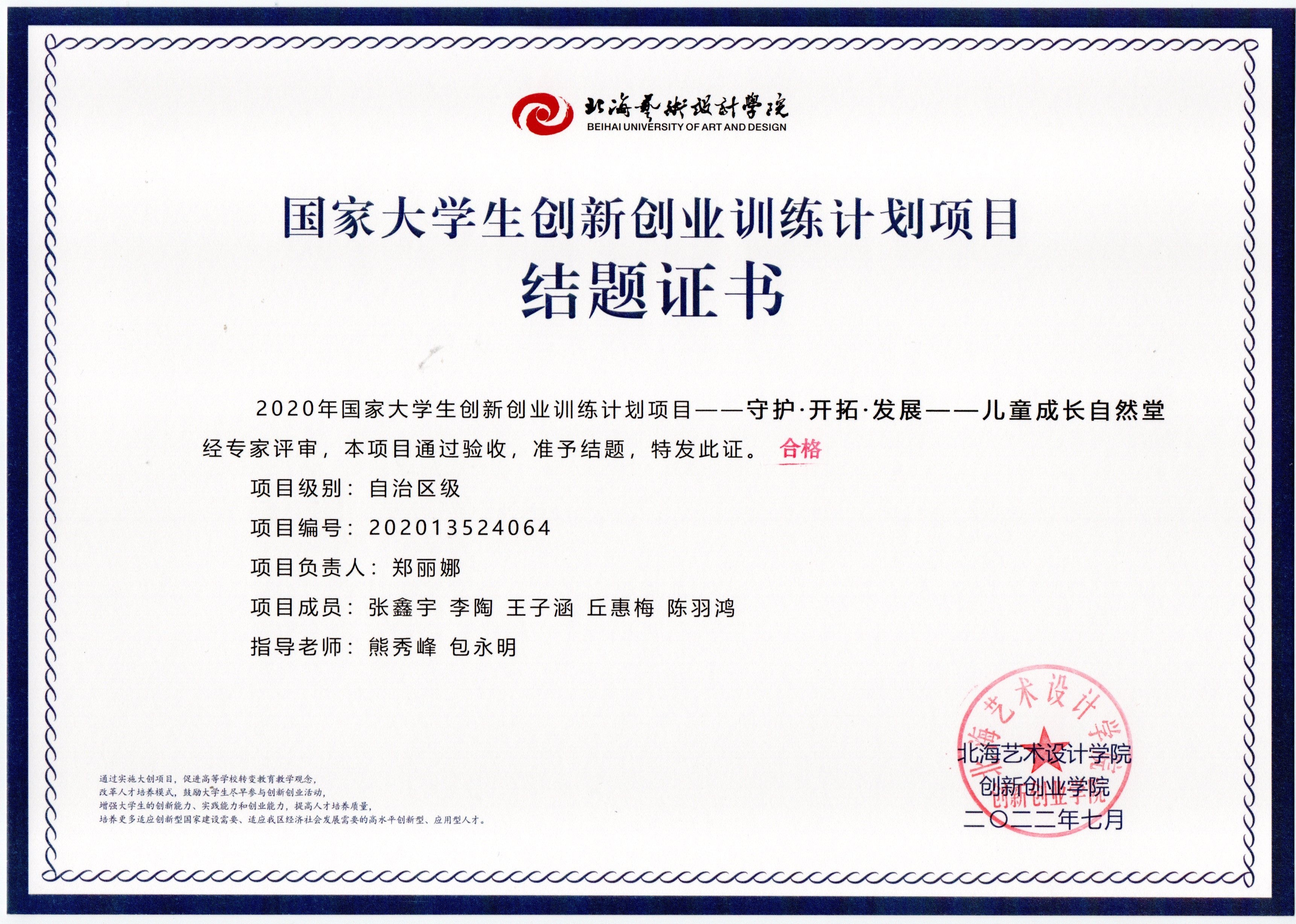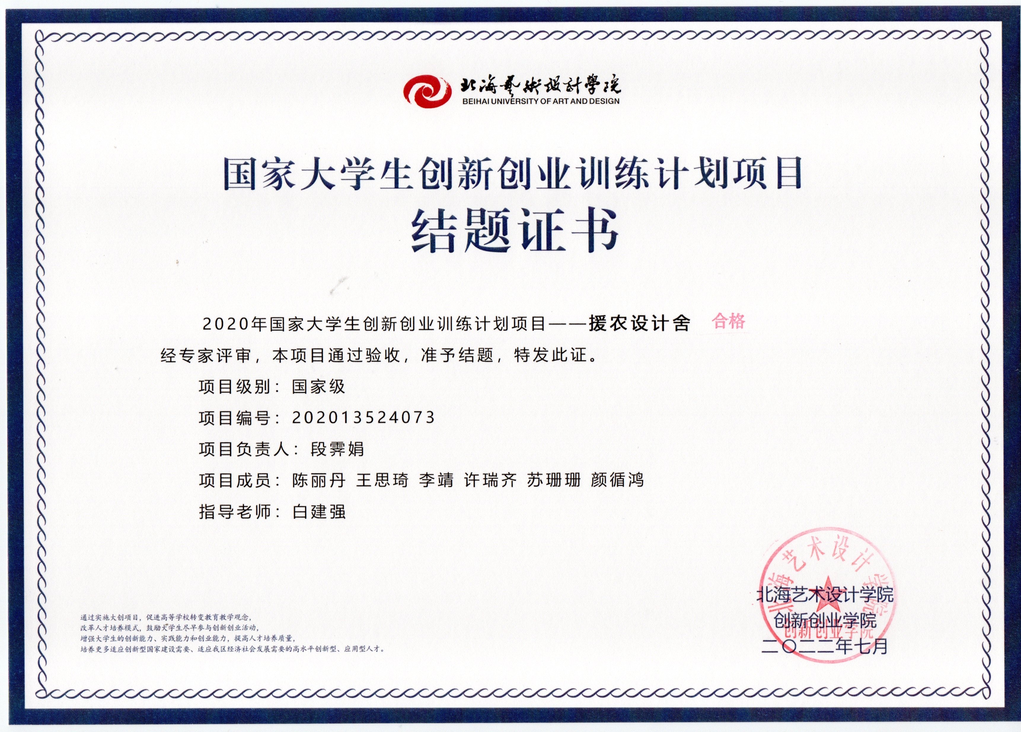 2020年立项(结题证书)
