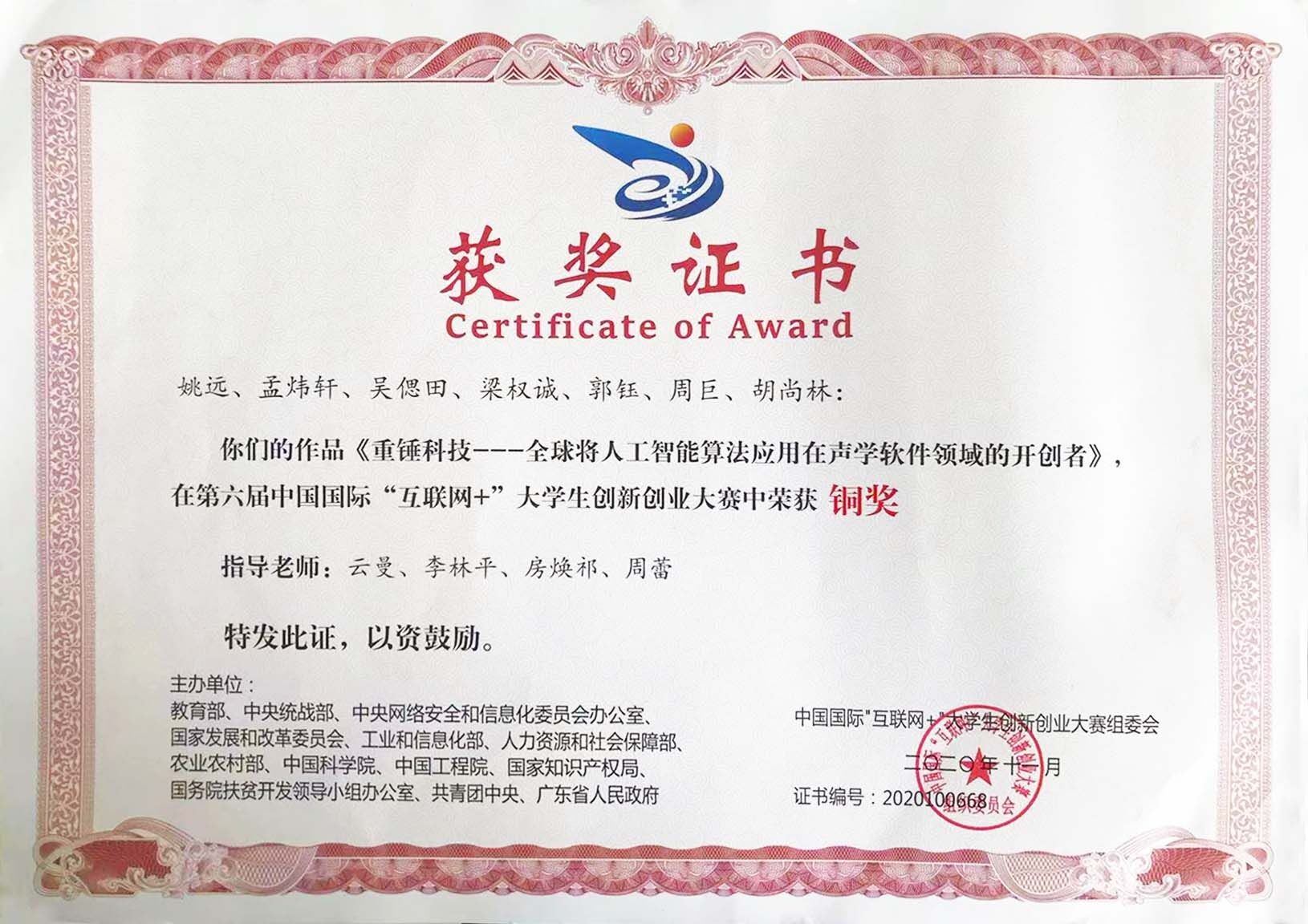 第六届中国国际“互联网+”大学生创新创业大赛铜奖