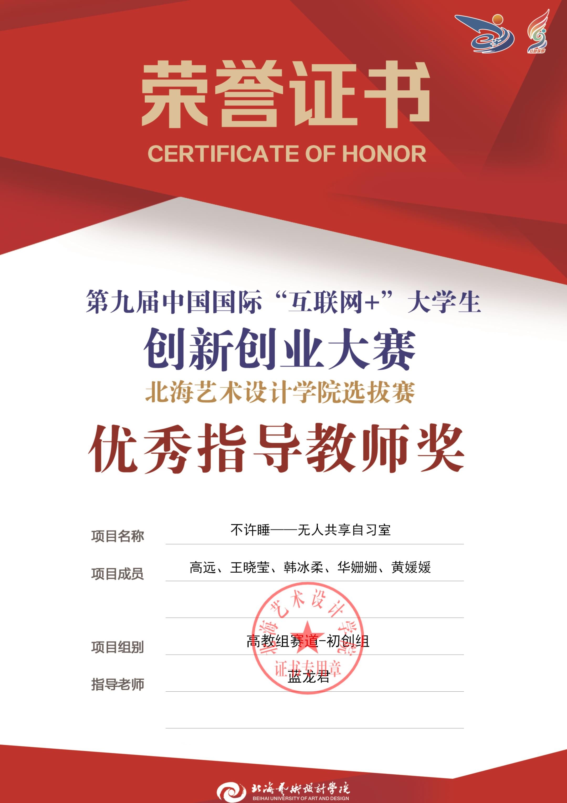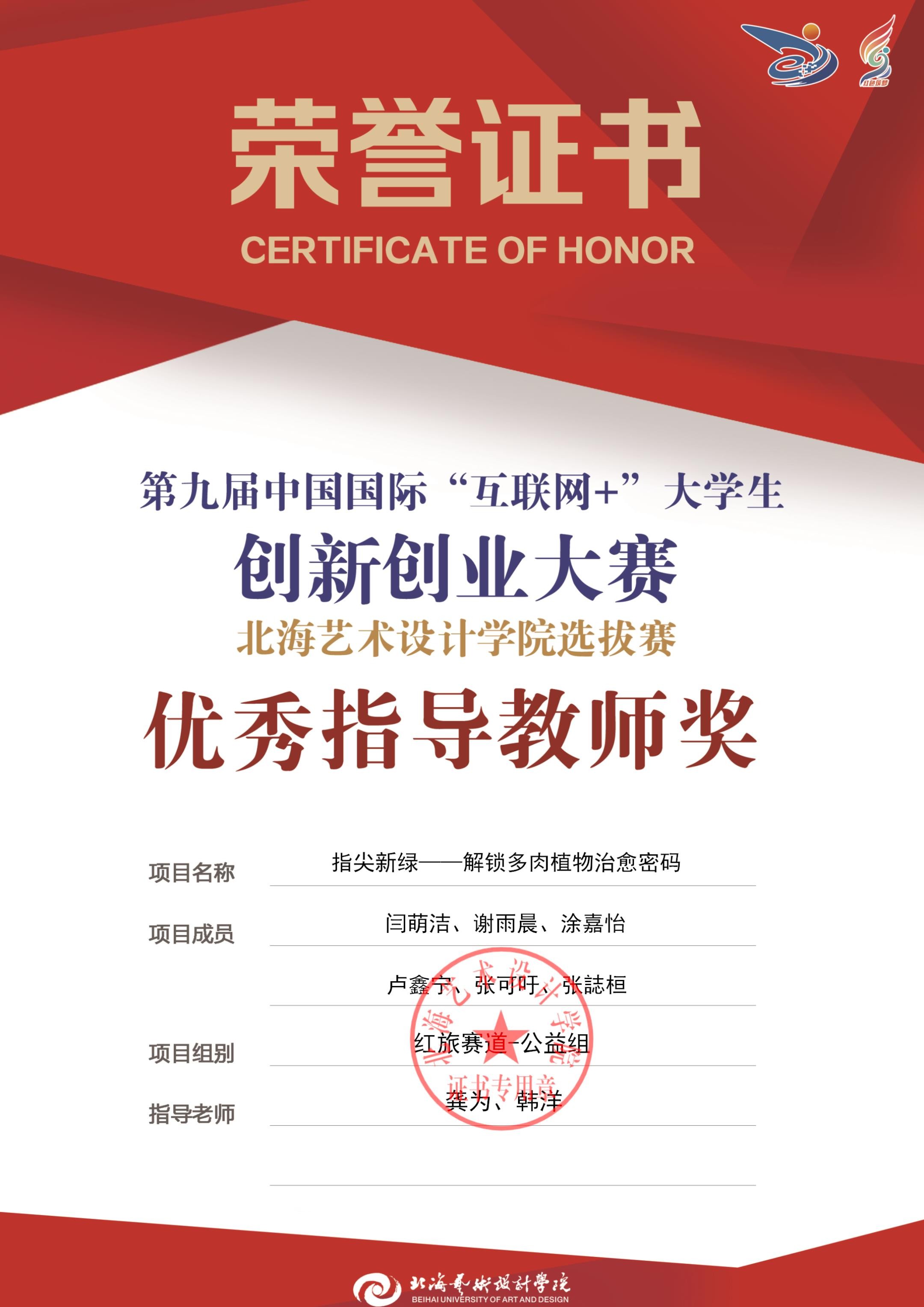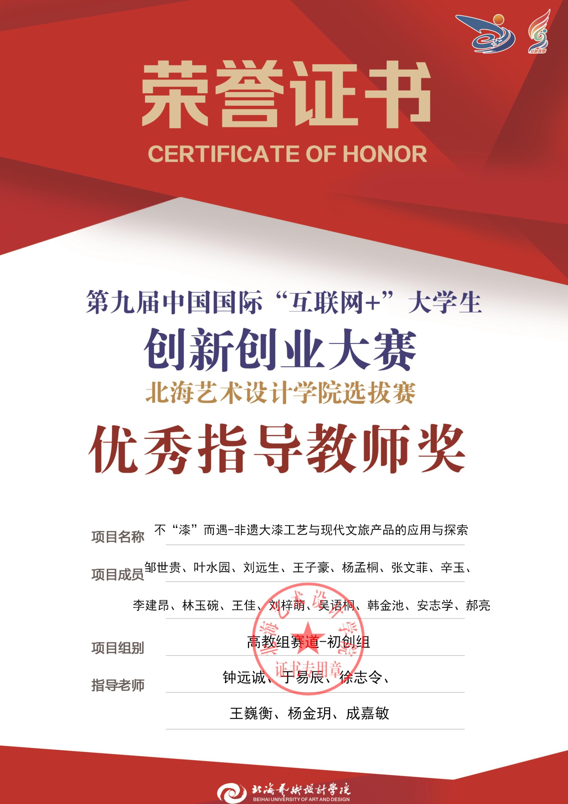 第九届中国国际互联网+大赛校级优秀指导教师