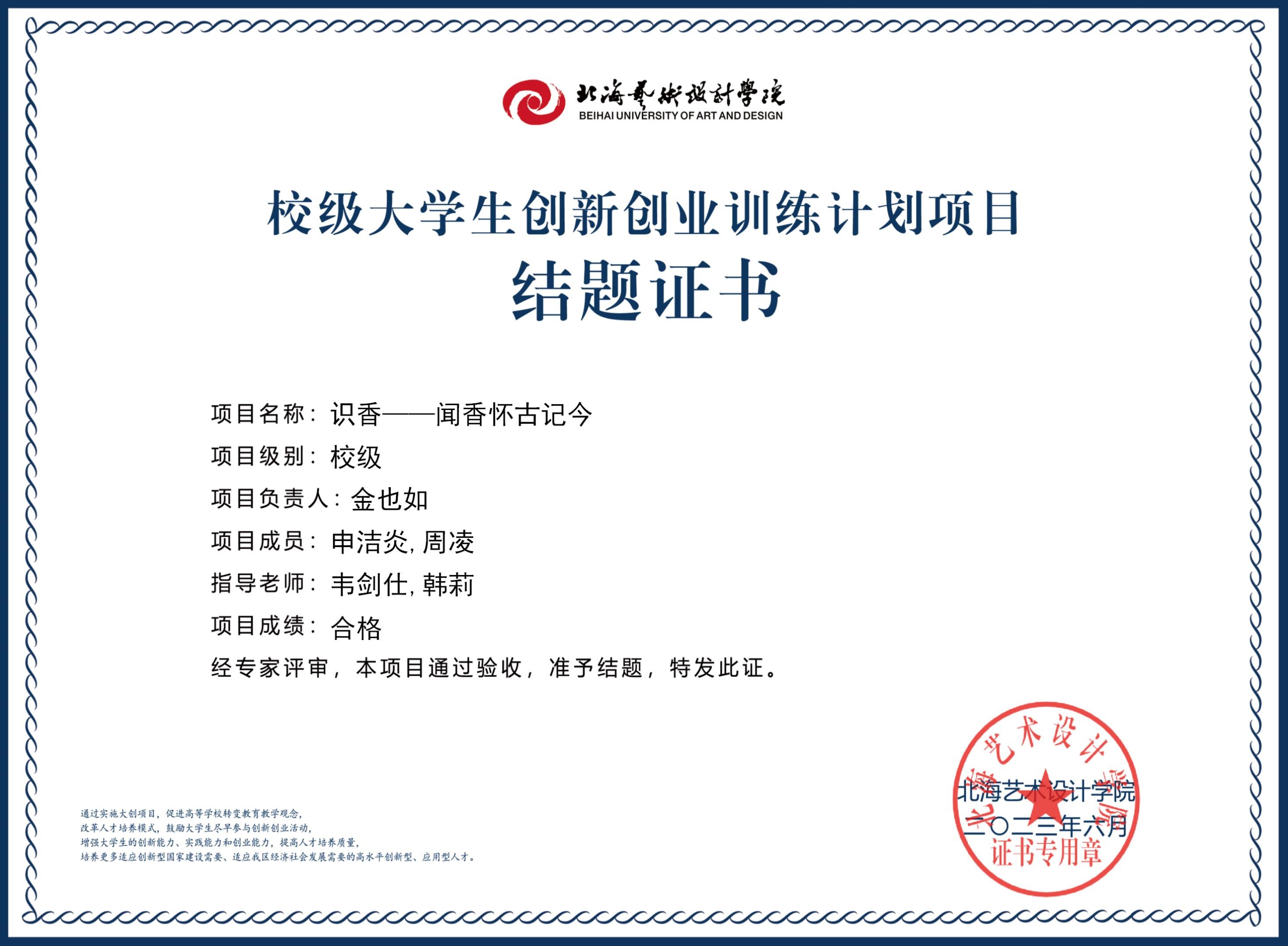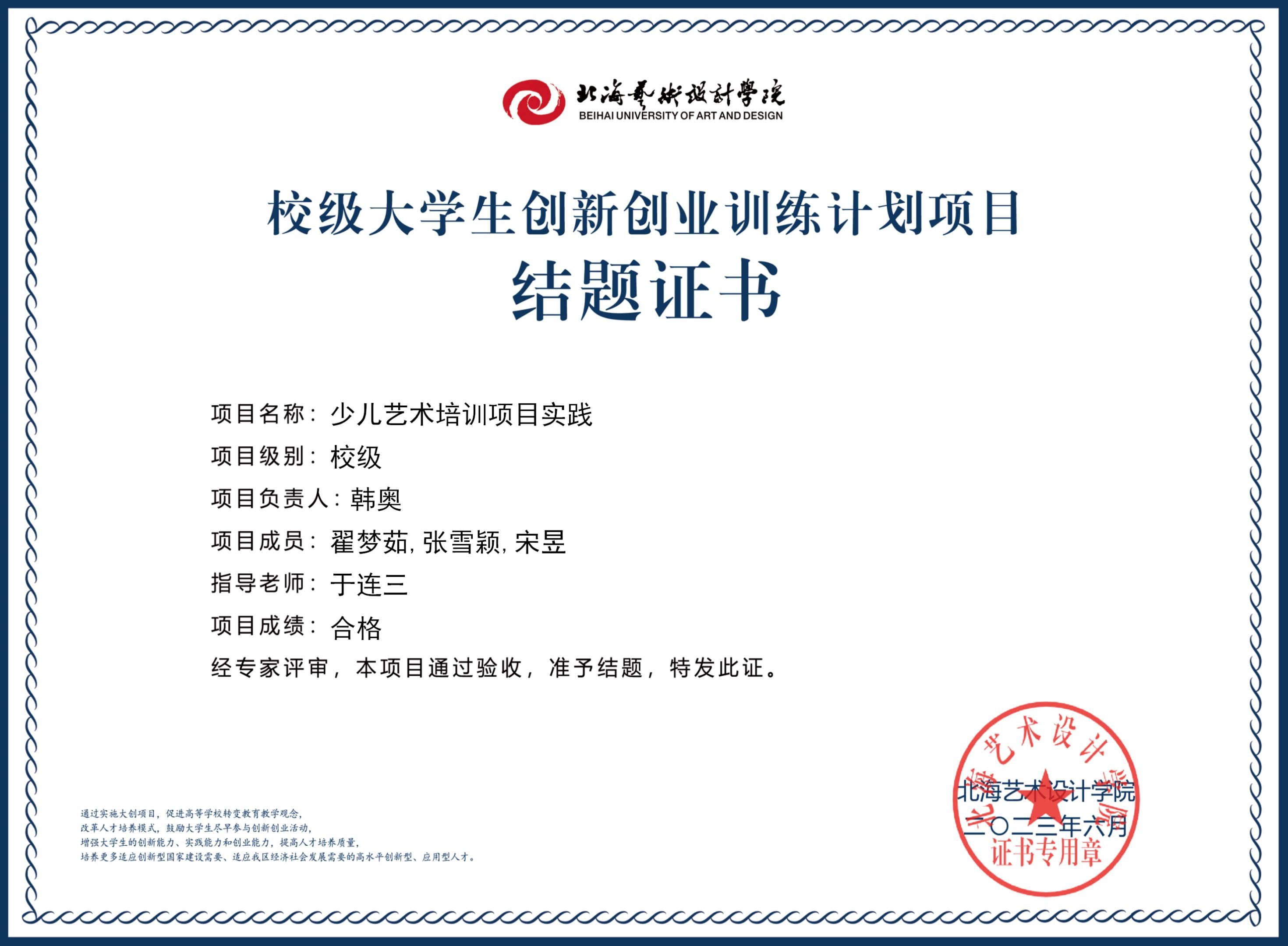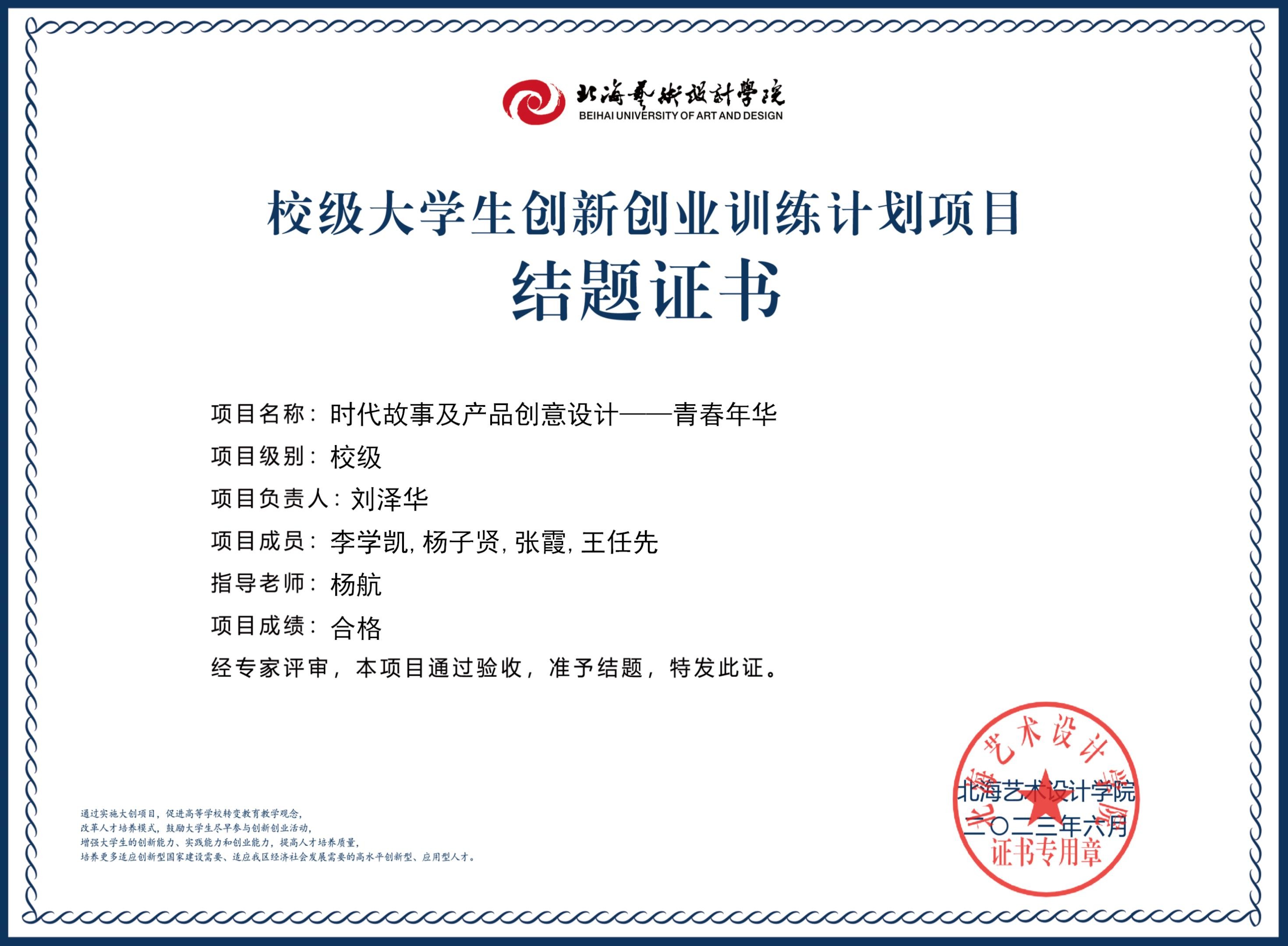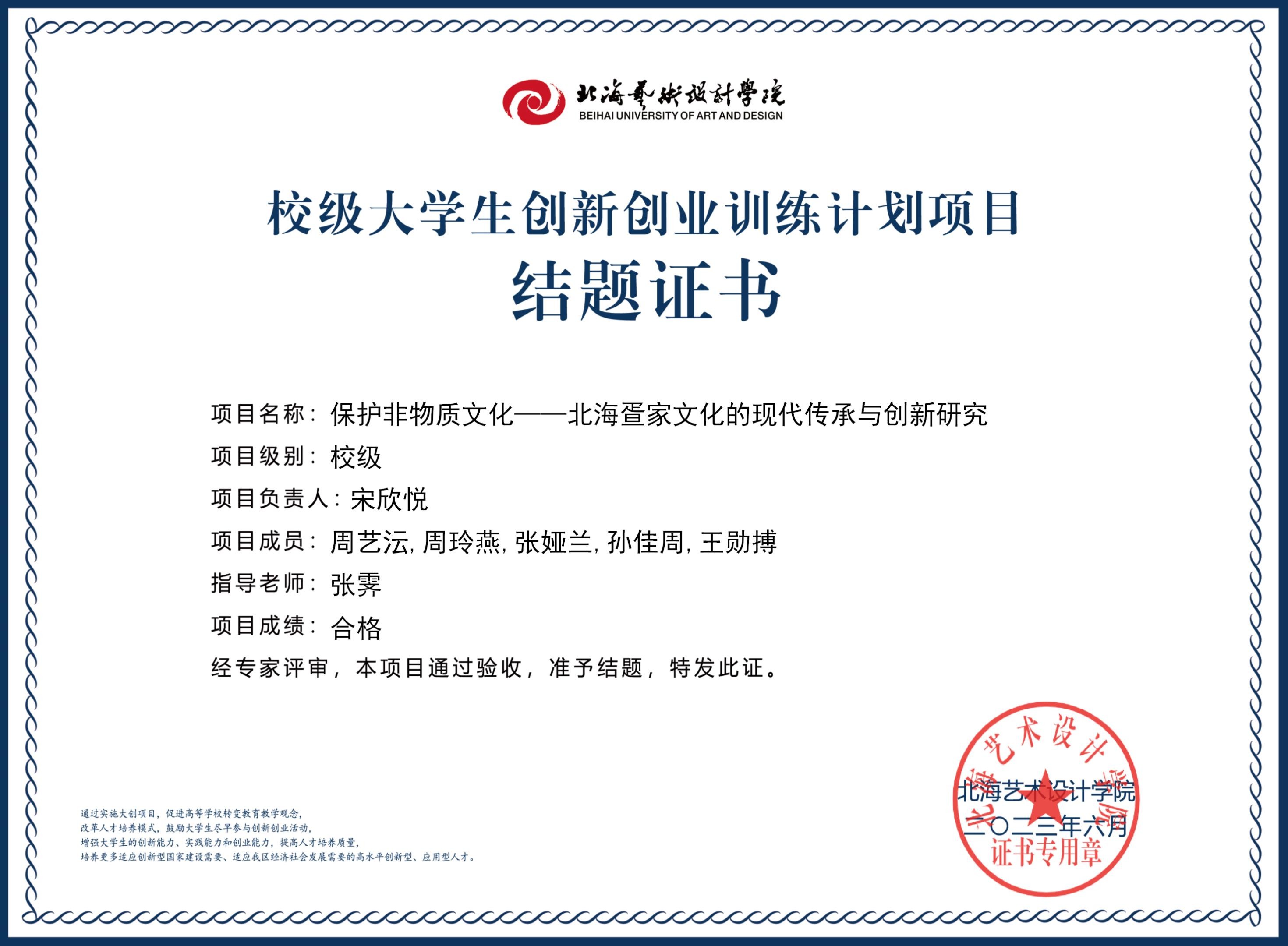 2023年校级大创项目结题证书