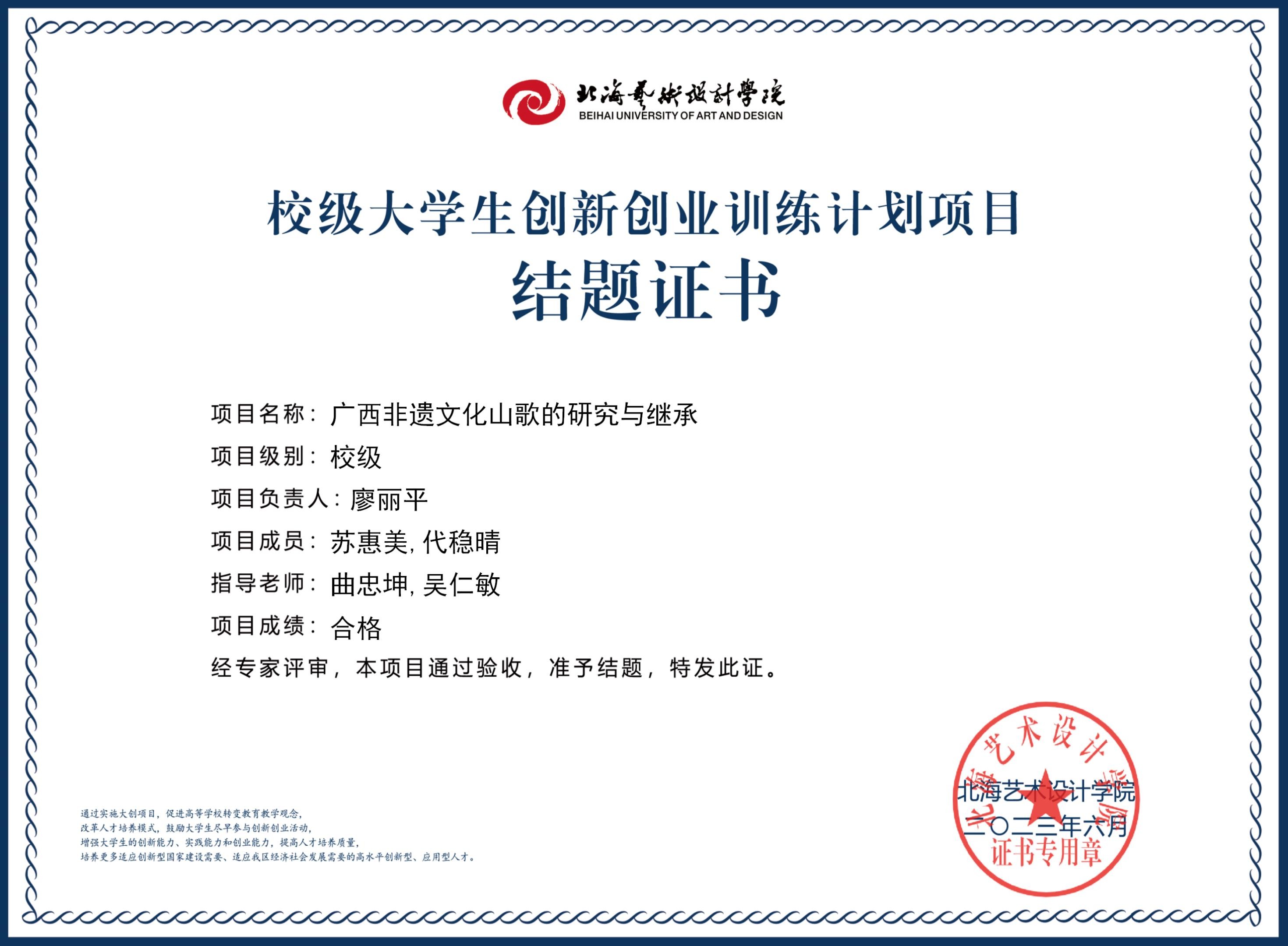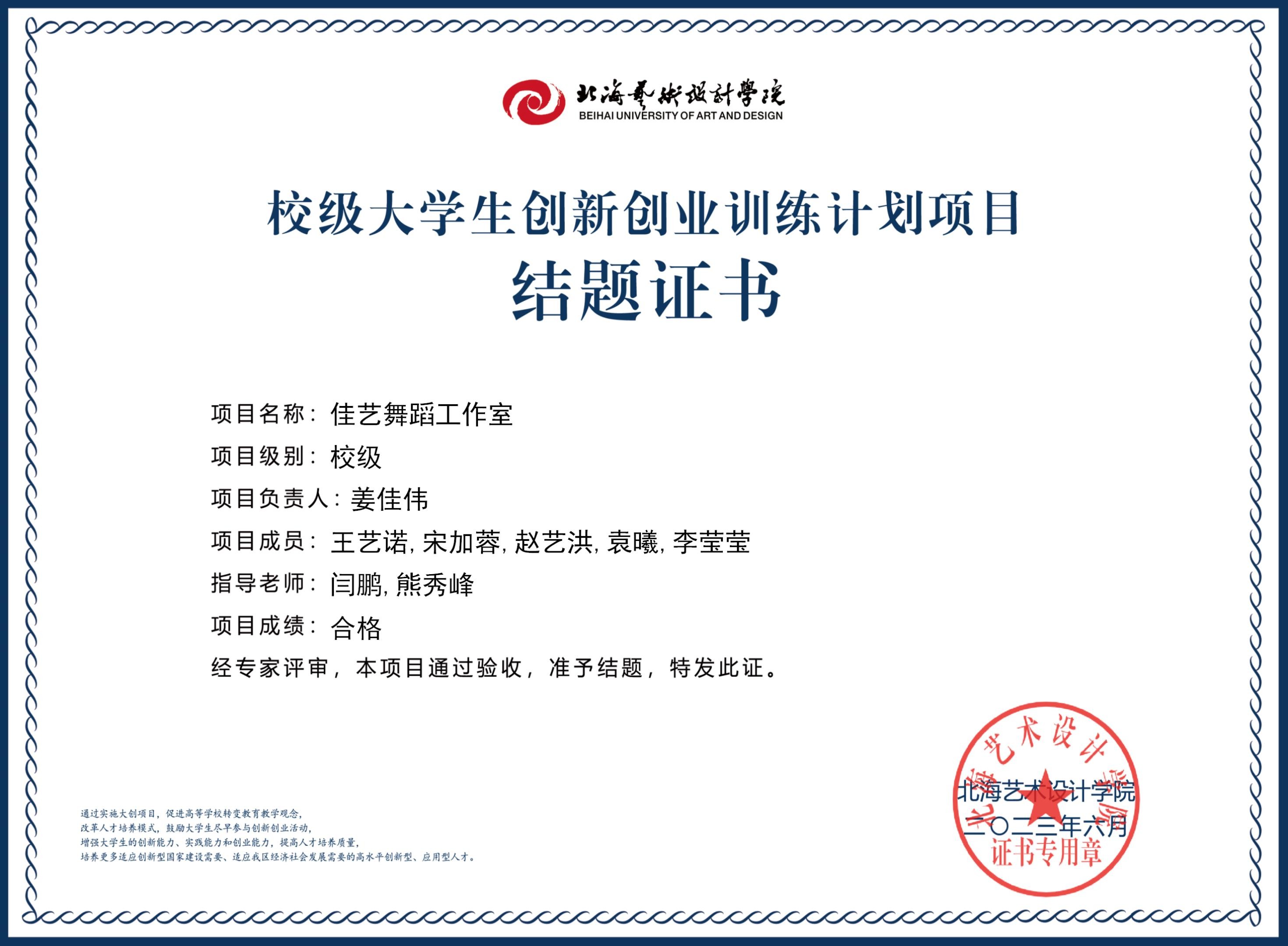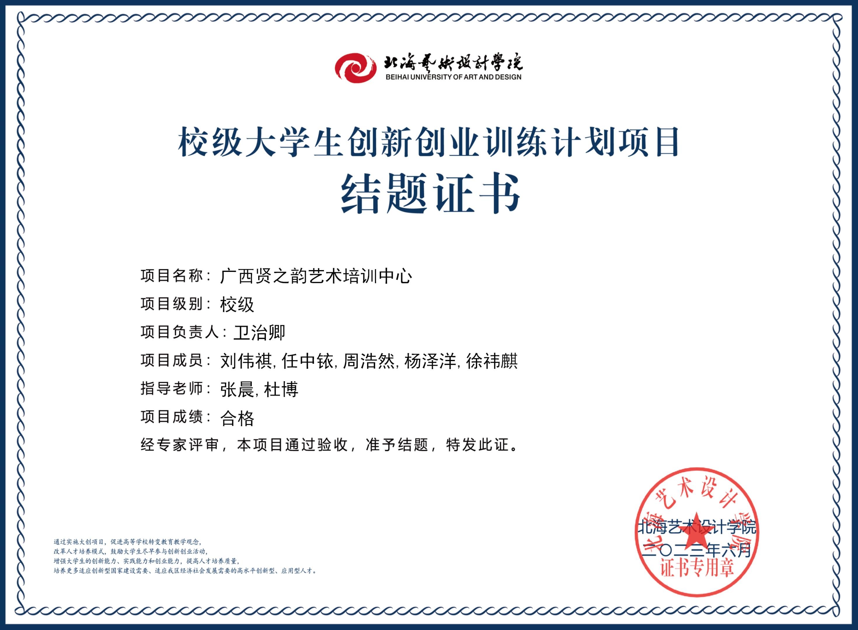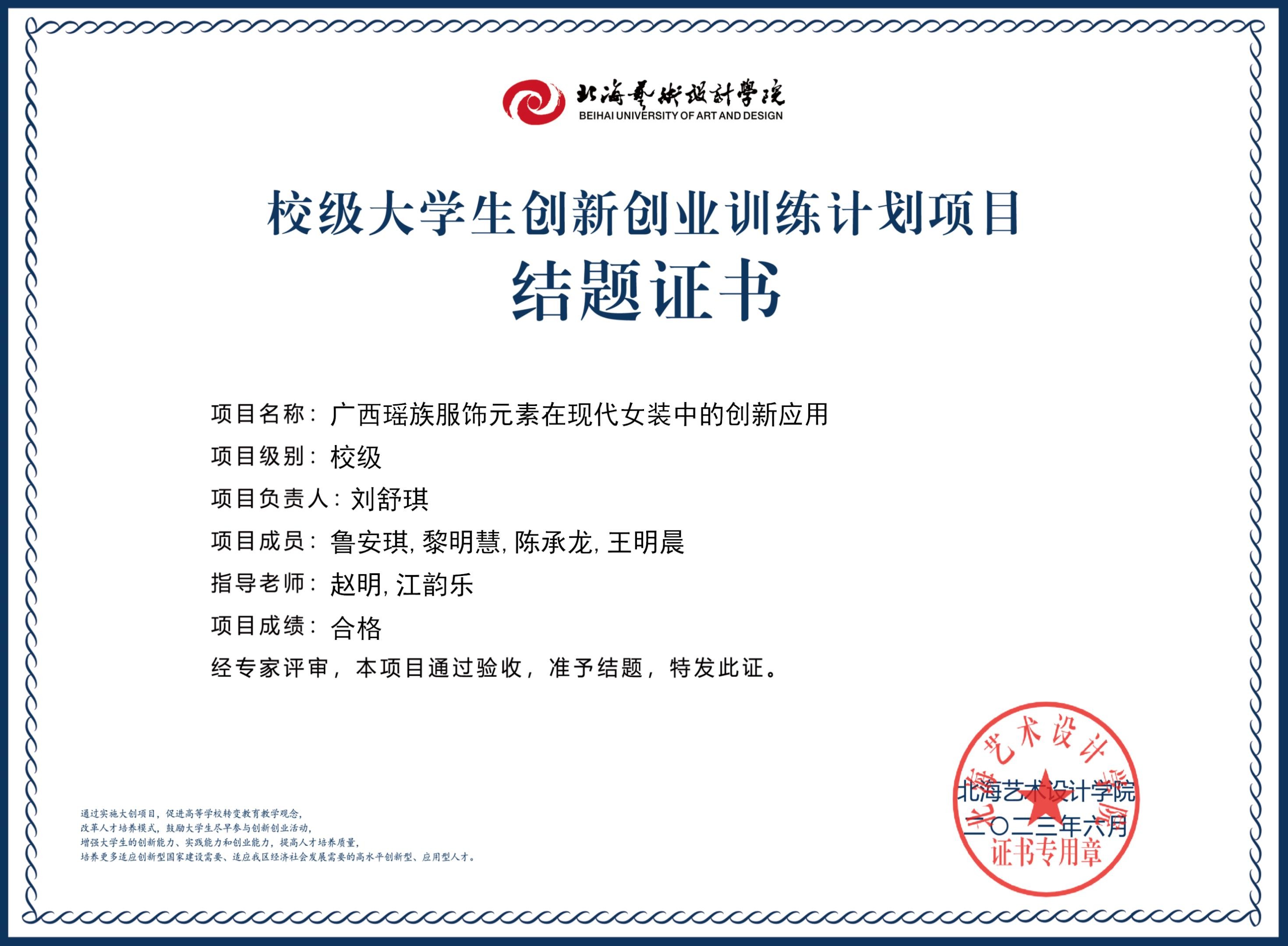 2023年校级大创项目结题证书
