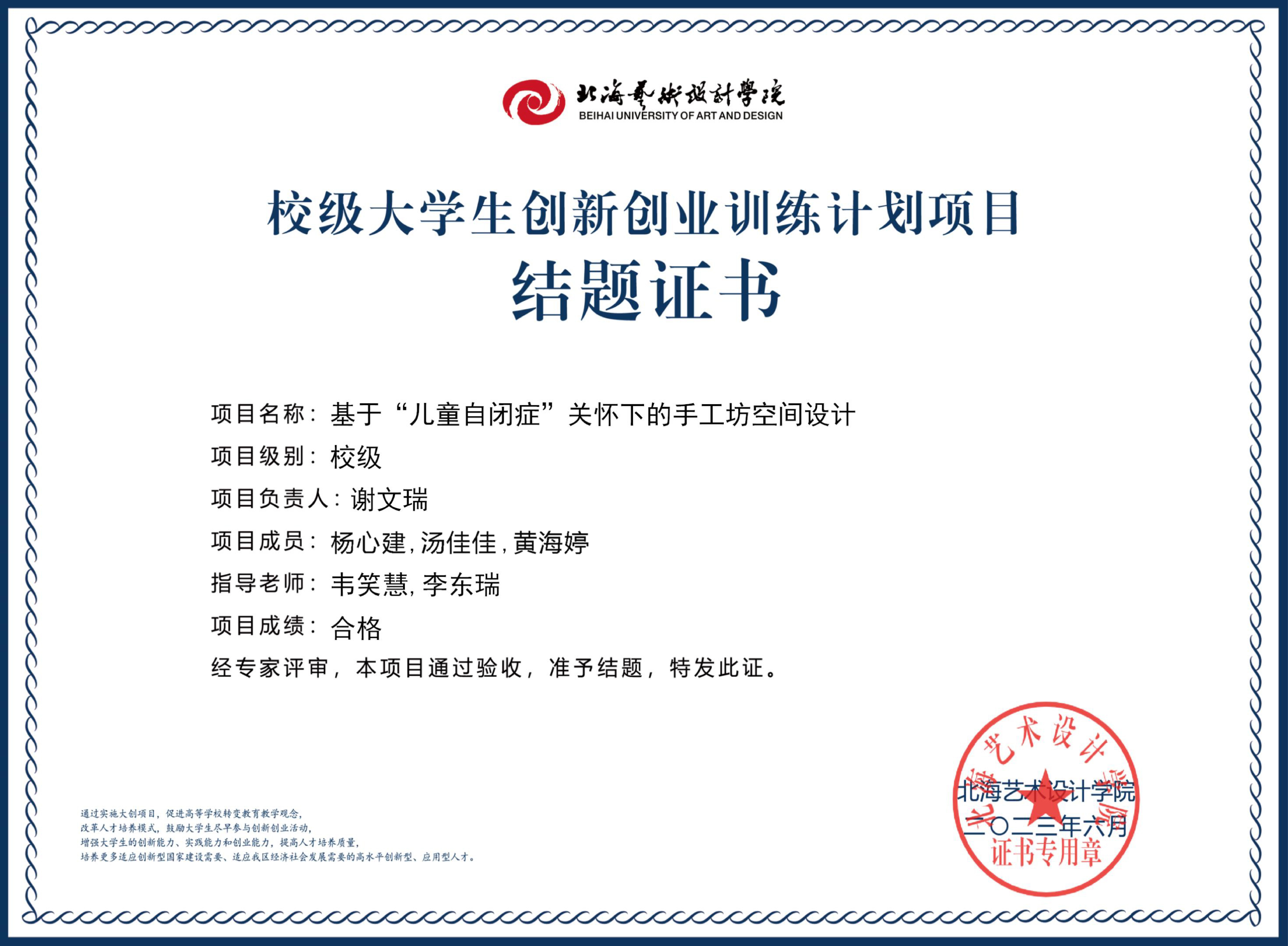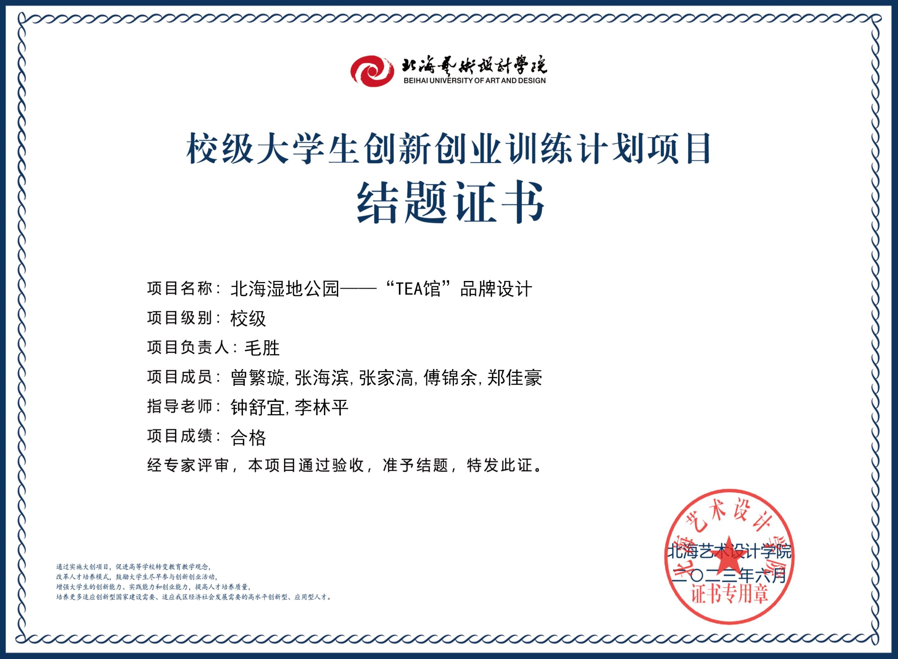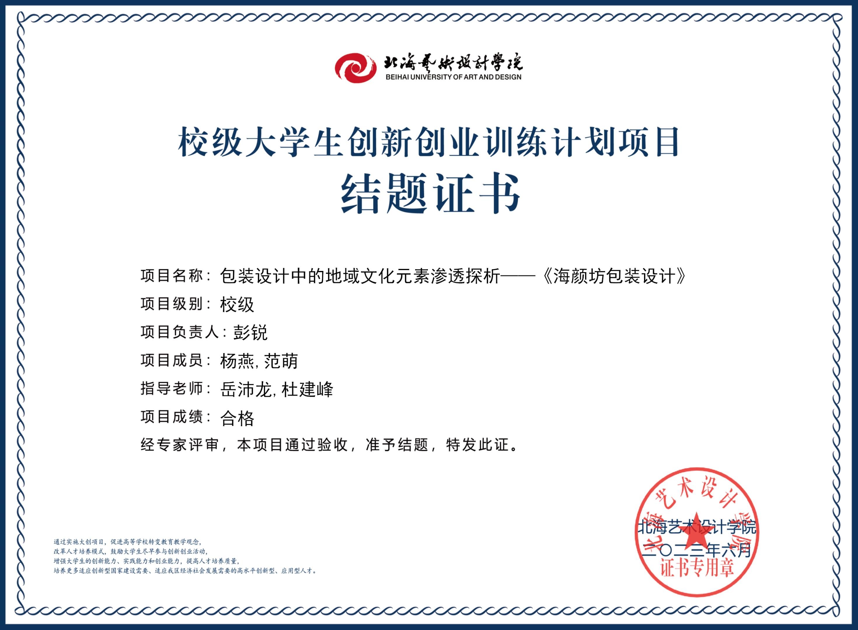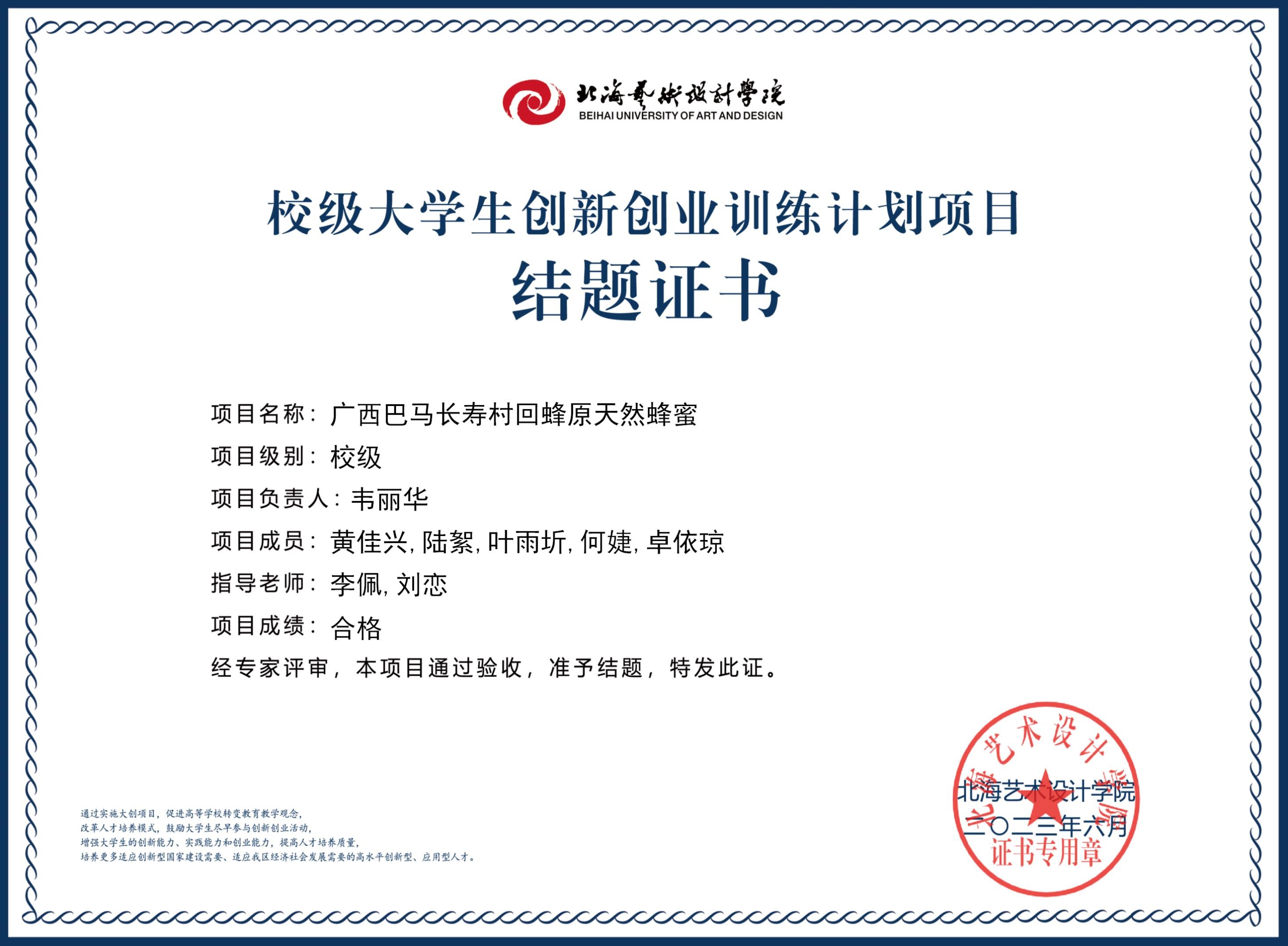 2023年校级大创项目结题证书