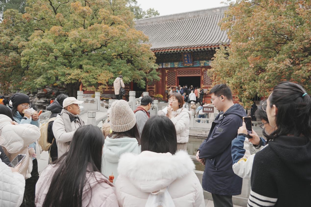 “从静宜园的三垣布局读懂传统设计的巧思,从香山饭店看见古今的对话,再从双清别墅触摸设计里的精神根脉——这次实践让我对‘景观’的理解不再只停留在图纸上。”参与实践的学生感言,道出了此次教学创新的育人成效。(王思涵、陈芳/摄)
