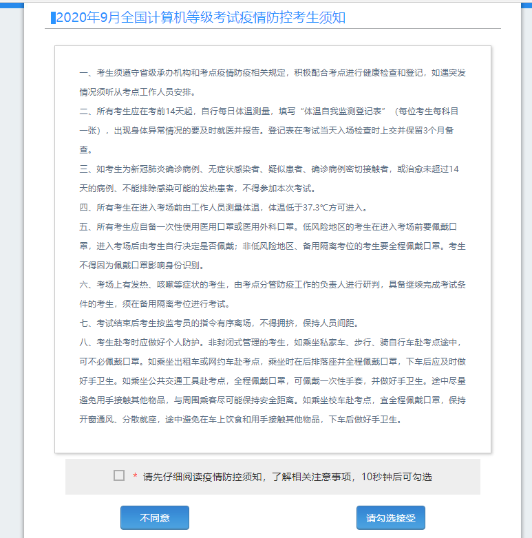 (四)仔细阅读并勾选遵守本考次疫情防控考生须知。