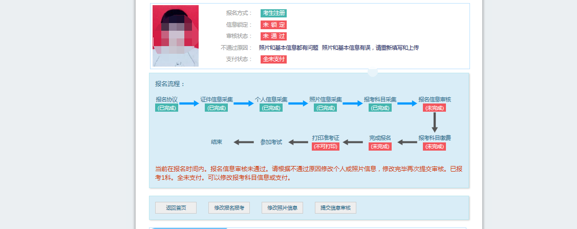 考生需要通过进入修改照片信息页面去修改照片信息。
