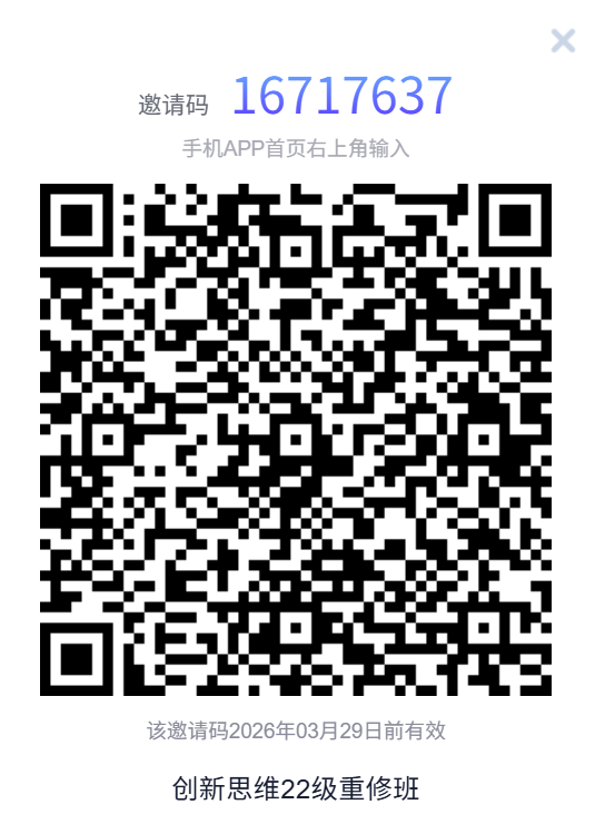 )《中国近现代史纲要》重修由马克思主义学院实施。2022级采用学习通APP线上授课。请2022级重修的同学在手机上下载学习通APP于2025年10月30日前实名(学号+姓名)添加邀请码11141006加入班级群,具体由任课教师王佳碧安排重修事宜。