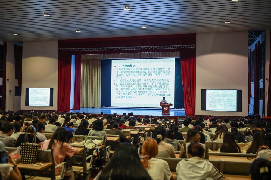 讲座伊始,廉世明馆长为现场师生讲述了文物的概念。文物是人类在社会活动中遗留下来的具有历史、艺术、科学价值的遗物和遗迹,是人类宝贵的历史文化遗产。文物作为具体的物质遗存,有二个基本特征: 一是必须是由人类创造或者与人类活动有关的;二是必须为已经成为历史的过去,不可再重新创造,即不可再生。
