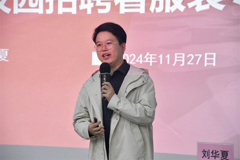 11月27日下午,爱慕学院高级经理、东华大学学生生涯导师刘华夏莅临我校,在西校区公德楼107开展了一场题为《从校园招聘看服装专业就业前景》的精彩讲座。
