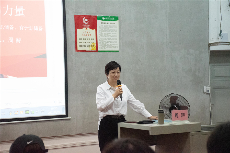 2021年4月29日晚上19:30,于我校东校区觉悟楼104,广西广播电视台播音指导周游教授为我校师生带了一场题为《储备的力量》的专题讲座,本次讲座由动画学院副院长庞定坤主持。