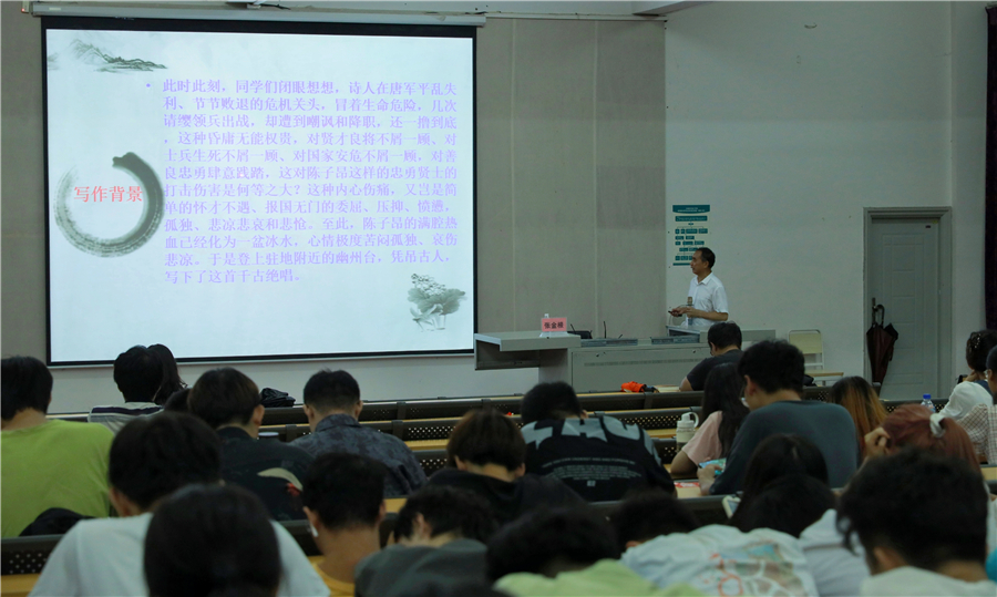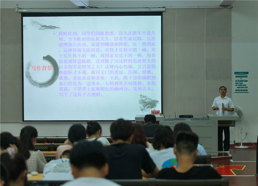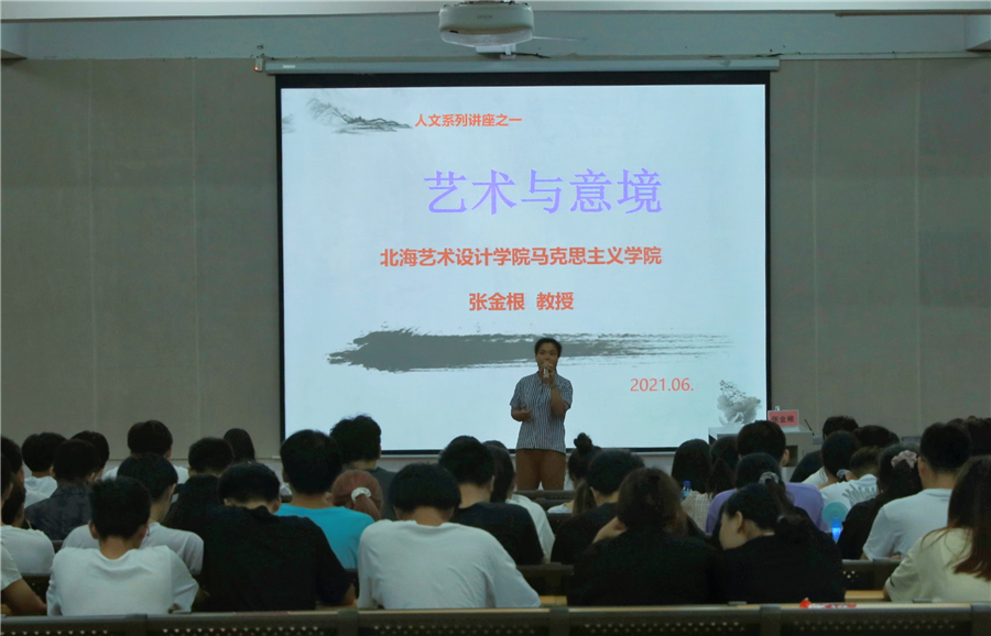 2021年6月24日晚上7点30分于我校西校区伦理楼107,我校马克思主义学院张金根教授为我校师生带来一场题为《艺术与意境》的精彩讲座,吸引广大师生前往聆听,本次讲座由马克思主义学院副院长罗秋梅主持。