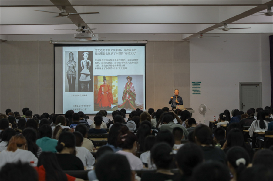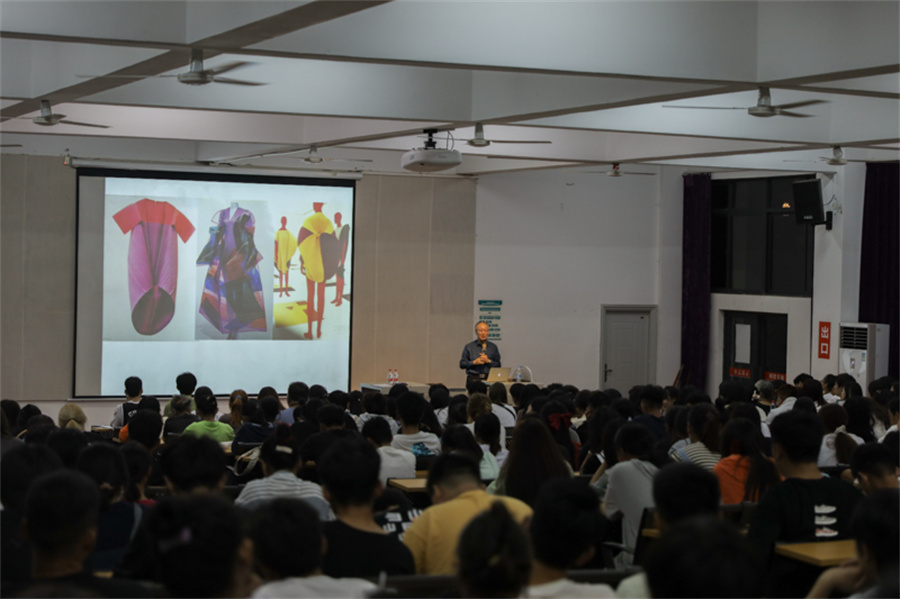 随后,李当岐教授从“丝绸之路的历史贡献”“毛布时尚”“棉布时尚”“三宅一生”这四个方面进行中西对比,讲述了中国与西方各个时期不同时尚文化的发展。他谈到各类新型材料、穿衣习惯对时尚的影响,讲述了中国文化对其他国家时尚文化的影响。