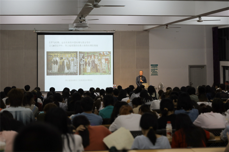 李当岐教授还从“时尚讲究‘T’、‘P’、‘O’”(即时间、地点、场合)和“从重装向轻装化方向发展”两个方面讲解了西方对服装在不同场合的要求与发展,分析现在互联网对时尚的影响。李当岐教授侧重讲述了时尚的弊端并引导我们要驾驭好时尚文化的力量,克服其负面影响,不断创新,发展利用好它的正面影响。