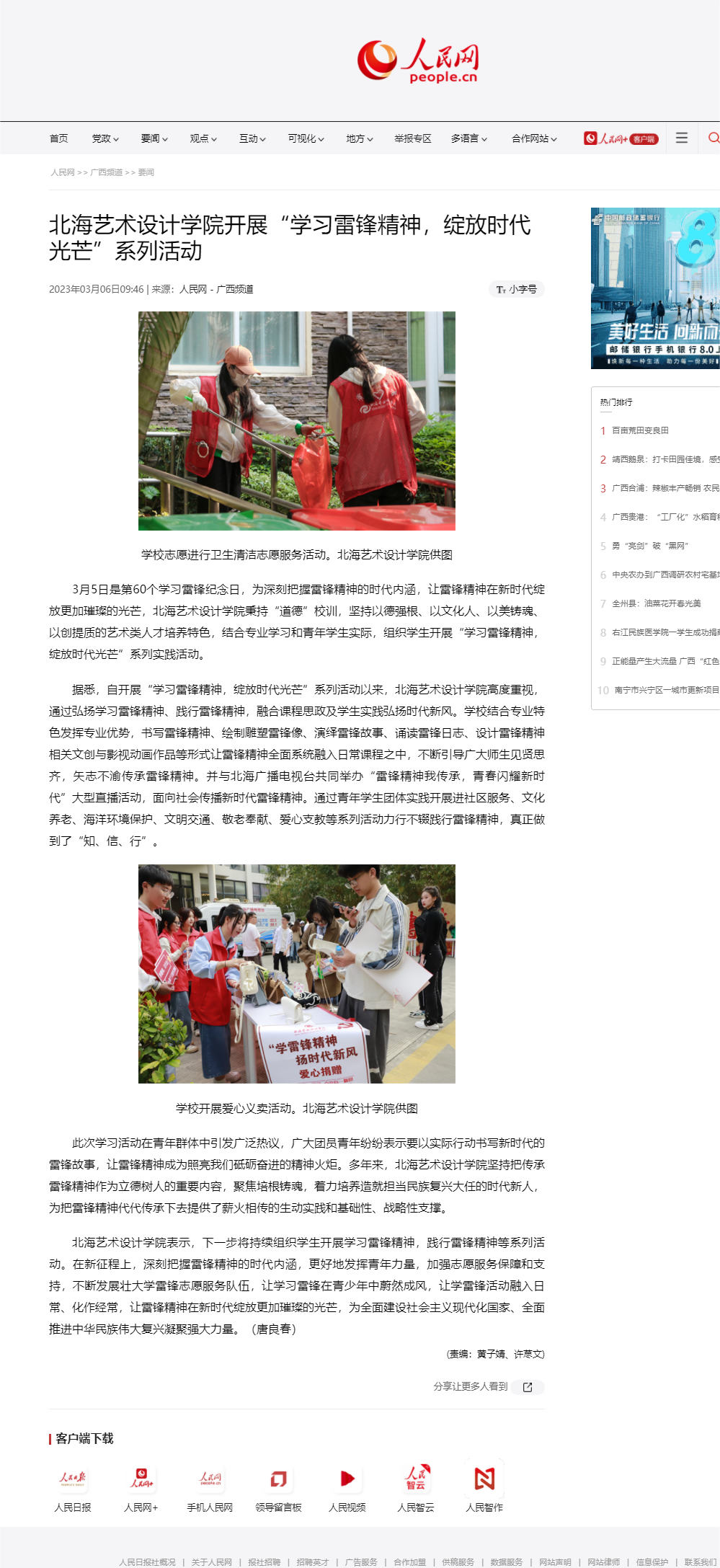 人民网:北海艺术设计学院开展“学习雷锋精神,绽放时代光芒”系列活动