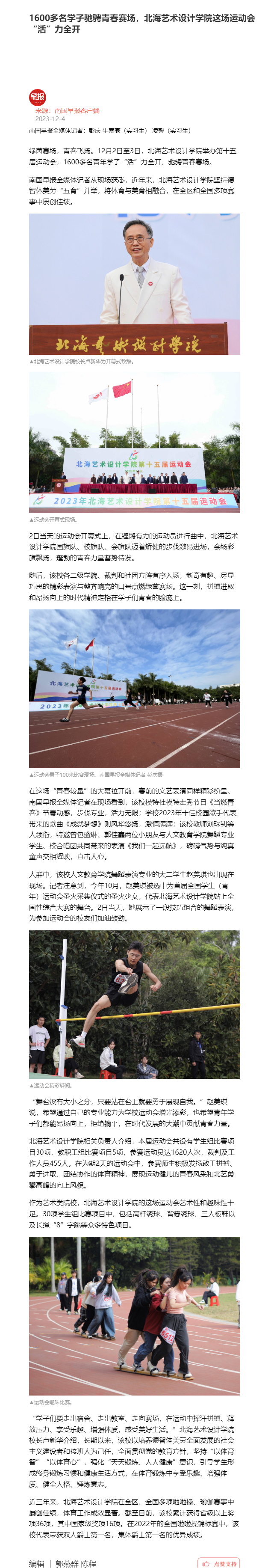 南国早报:1600多名学子驰骋青春赛场,北海艺术设计学院这场运动会“活”力全开
