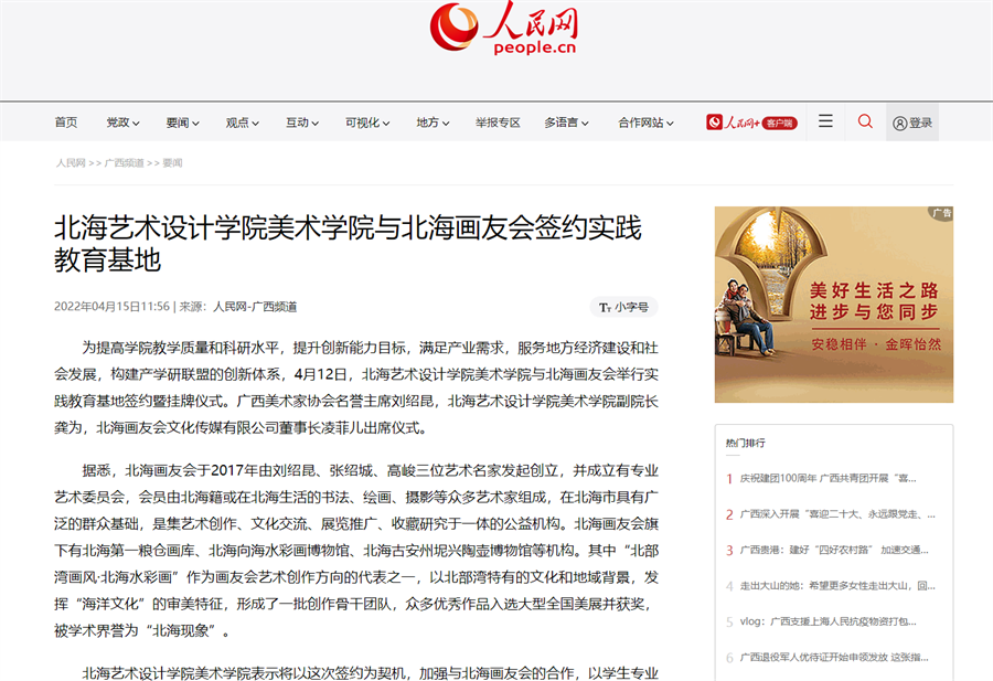 人民网:北海艺术设计学院美术学院与北海画友会签约实践教育基地