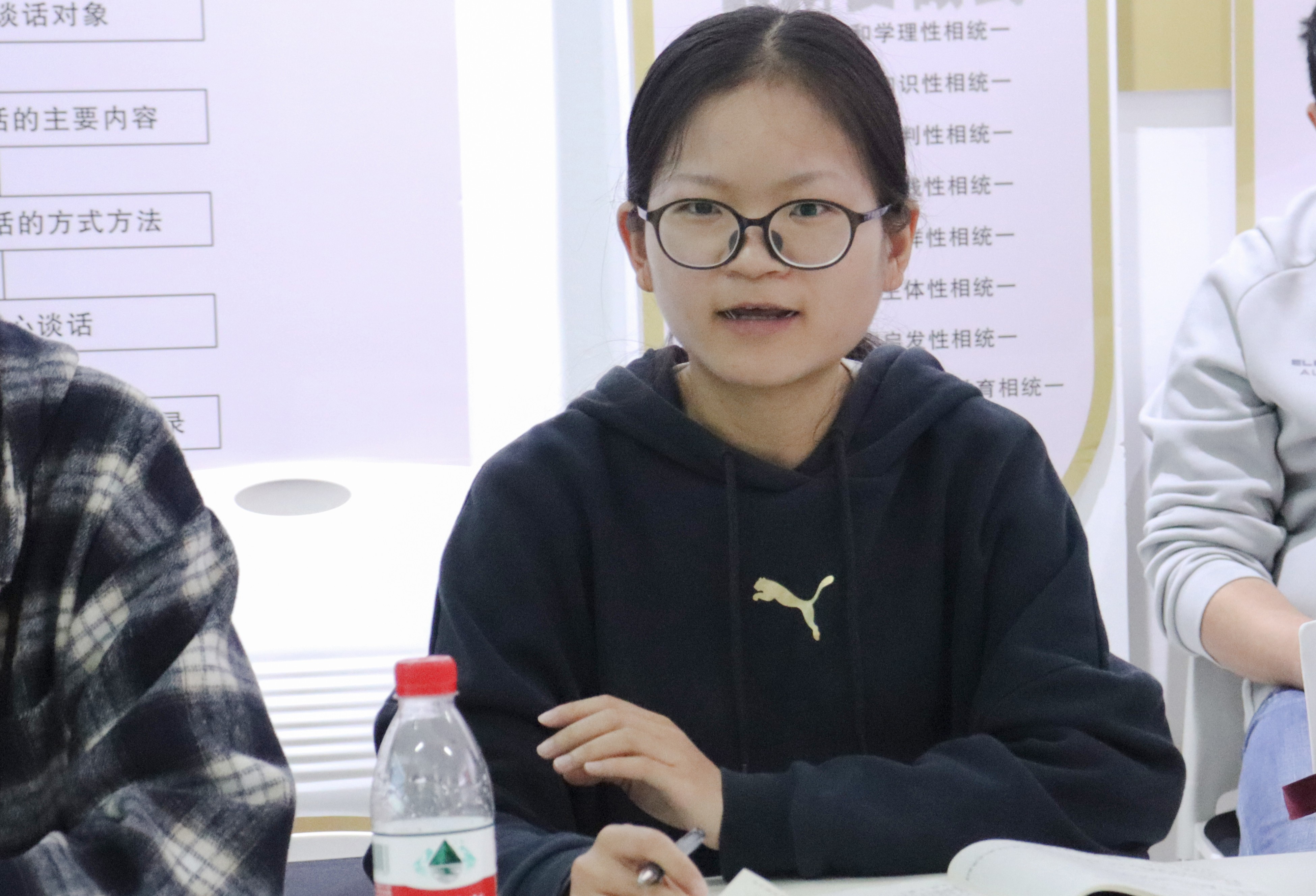 活动中,何敏芝副教授具体从《为人民服务》的形成历史背景、主要内容解读与意义、日常体现、重读启示四个方面对该著作进行了深入分享。在历史背景梳理环节,她系统回顾了张思德同志在延安时期的感人事迹,清晰阐释了“为人民服务”作为中国共产党根本宗旨的形成脉络与历史必然性。随后,在对其主要内容解读与意义时,她精准提炼出了这篇著作的三大要义:一是明确了中国共产党及其领导的革命队伍“为人民服务”的性质;二是树立了“为人民利益而死重于泰山”的正确革命生死观;三是划定了为人民服务要勇于批评、接受监督、改正错误、办法对人民有益就照办的行为准则。紧接着,她结合自身担任年级辅导员的丰富工作经验,贴合实际地分享了全心全意为人民服务的根本宗旨在教育教学中的日常体现。在重读《为人民服务》的启示中,她认为新时代思政课教师应构建“为人民服务”的教学与创作生态,推动其与专业课程的深度融合。