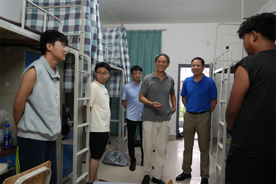 学校高度重视迎新工作,9月10日,学校党委书记覃宪儒、校长卢新华、副校长何煜等校领导走进新生宿舍与新生及家长亲切交流,询问他们初入大学校园后的感受,关心他们在生活、饮食等各方面的适应情况。校领导鼓励同学们勇敢面对新环境,尽快调整自身状态,主动适应大学生活,努力学习,积极投入到即将开始的丰富多彩的大学生活中。校领导的亲切走访和温暖慰问,让家长安心放心的同时也增强了新同学对学校的归属感和认同感。