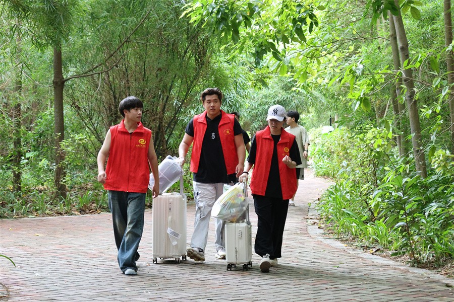 迎新期间,学校相关职能部门通力合作,提前谋划,精心准备,全方位服务保障迎新工作顺利开展。此次新生报到期间,校门、校园主干道,迎新现场、宿舍区等主要区域迎新氛围浓厚,各项迎新标识清晰到位。学校在北海站、机场设置了迎新点,引导新生乘坐专线接送车辆前往学校;抵达学校后,青年志愿者帮助新生搬运行李,党员先锋岗和绿色通道协助报到,新生从入校、报到、办理住宿各环节安排均有志愿者和工作人员提供热心服务;学校还策划开展了校园迎新互动活动,帮助新生更好适应新环境、开启新生活。