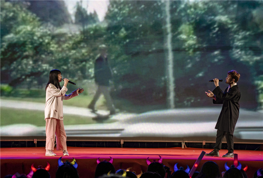 洪金磊,姚铭晗合唱的《虎口脱险》,深情无比,令人动容,台下掌声连连;拉丁舞《拉丁串烧》奔放自信的魅力在眉目间流转,热情轻快、酣畅淋漓让人心动于舞蹈的魔力之中。街头文化社说唱部带来的《红色》,流行的音乐形式演绎中国红色精神,热血的歌声飘荡在校园; 由舞表1902的同学带来舞蹈《纸扇生花》,表演者手握纸扇,端庄高雅、可谓意气风发。