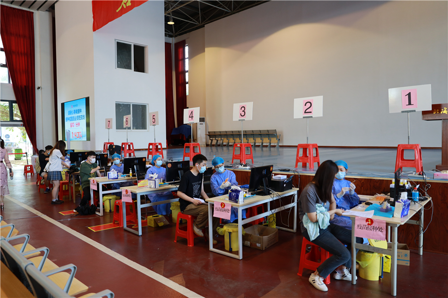 截止5月15日,在校内临时接种点已完成7600余人新冠病毒疫苗接种。(