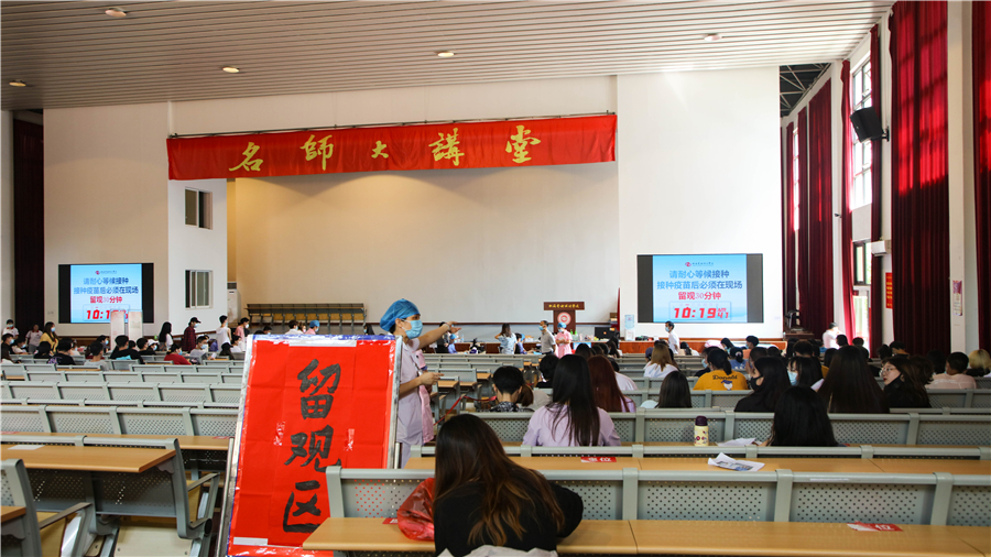 “有没有过敏史?”“有无特殊病史?”在疫苗接种区,细致专业的医务人员耐心的询问着每位师生的身体状况。“目前没有出现身体不适,一切良好”已接种的同学们如是说到。