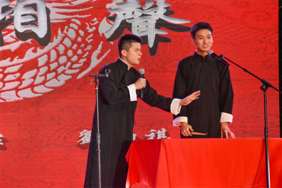 相声表演《相声新秀》展现巧妙的语言艺术,营造轻松的氛围,弘扬原汁原味的传统中华文化;街头文化社带来舞蹈《热血青春》,动感节奏搭配强劲有力的动作,展现了当代大学生的激昂热情与无限活力;歌曲《别叫我达芬奇》、《我在人民广场吃炸鸡》创意改编曲风,展现北艺学子个性风采,激情的洒水环节点燃全场气氛。晚会现场高潮迭起,气氛热烈,掌声、欢呼声不断。