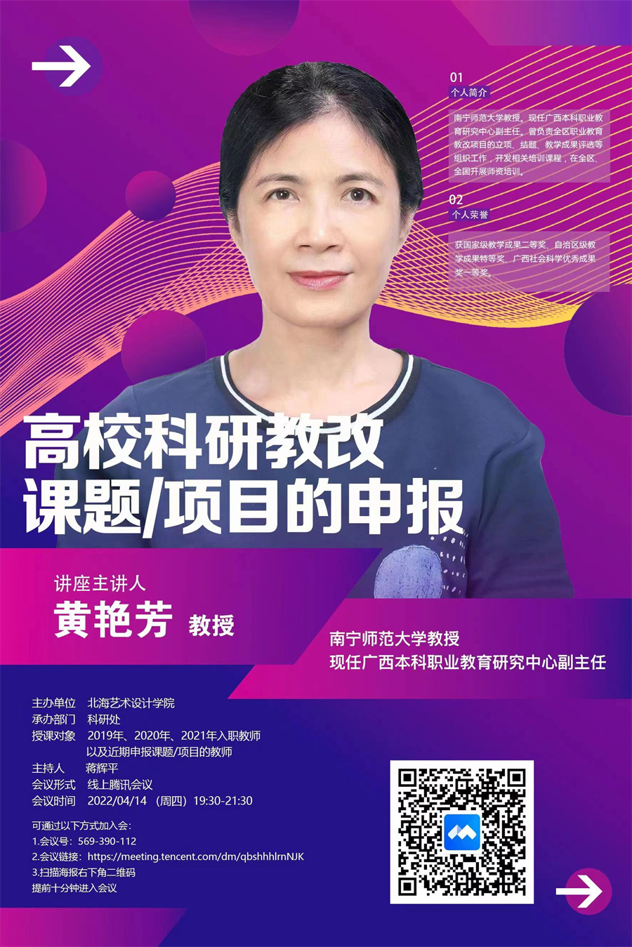 【以评促建】南宁师范大学黄艳芳教授应邀为我校进行科研与教改项目申报线上讲座
