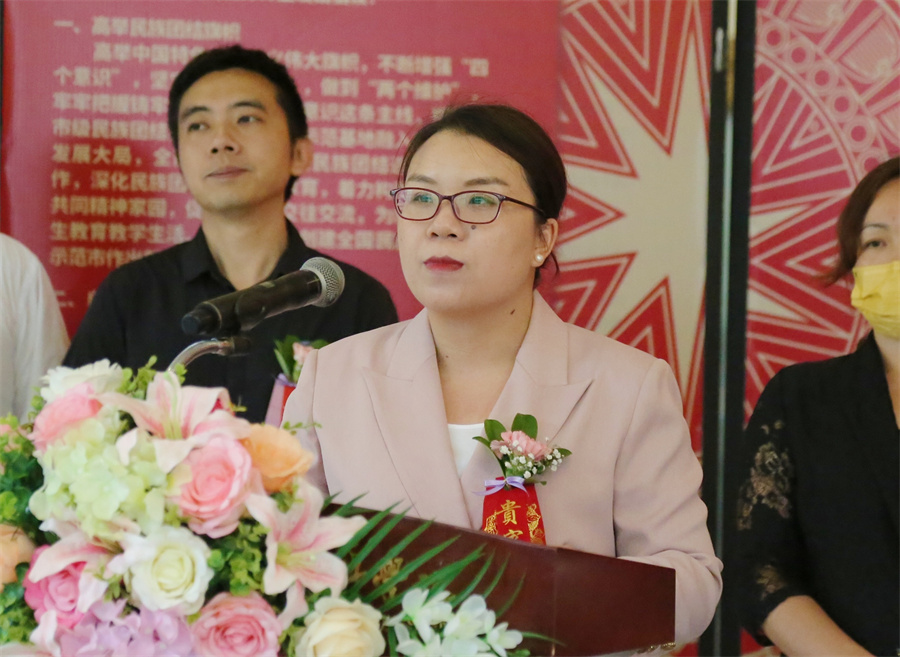 党委副书记韦静月介绍民族团结进步教育活动实施方案
