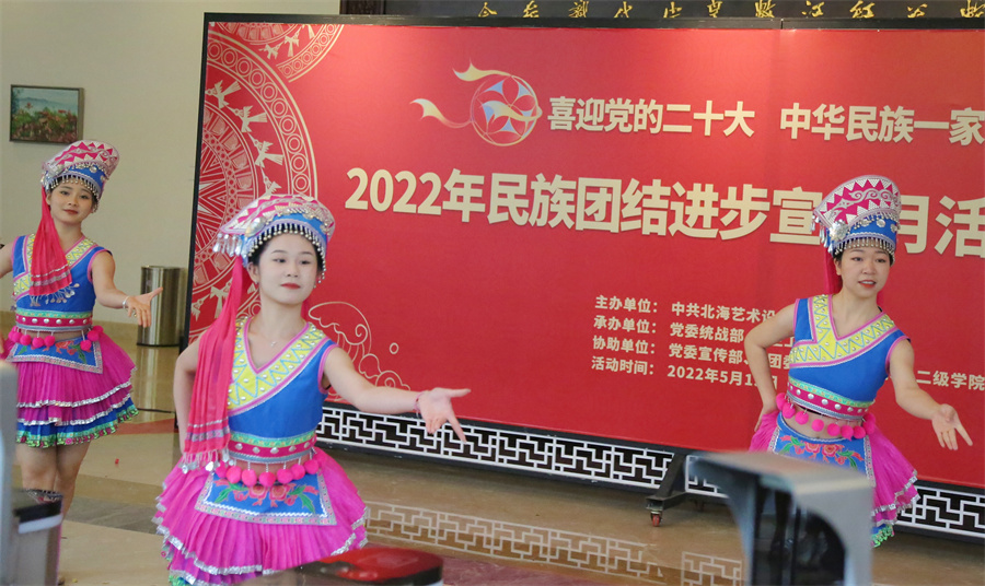 据悉,北海艺术设计学院开展以“喜迎党的二十大 中华民族一家亲”为主题的民族团结进步宣传教育活动,将通过“办游园、做展演、重体验、广宣讲、强主题、建基地、抓阵地、树典范”等10个主题22个活动,促进学校师生切实铸牢中华民族共同体意识,不断提升学校民族团结进步创建成果,推进民族团结进步工作不断开拓新局面。学校于2021年荣获了“北海市民族团结进步教育基地”“北海市民族团结进步示范学校”荣誉称号。(周小琪、学生工作部(处)、大学生记者团/摄)