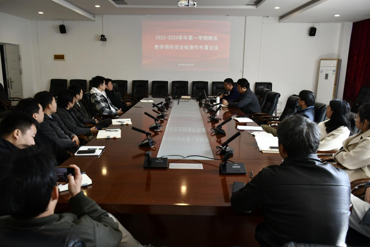 为贯彻落实自治区教育厅《关于认真贯彻落实习近平总书记重要指示精神切实做好岁末年初学校安全工作的通知》(桂教安稳〔2023〕30号)精神,确保教育教学场所的安全,保障教师和学生的身心健康。2023年12月26日,学校实验教学中心组织全校各学院、部门在西区行政楼212会议室召开了教学场所安全检查工作布置会议。会议主要由实验教学中心副主任曾之光主持,各学院安全负责人和部分教师代表参加了会议。